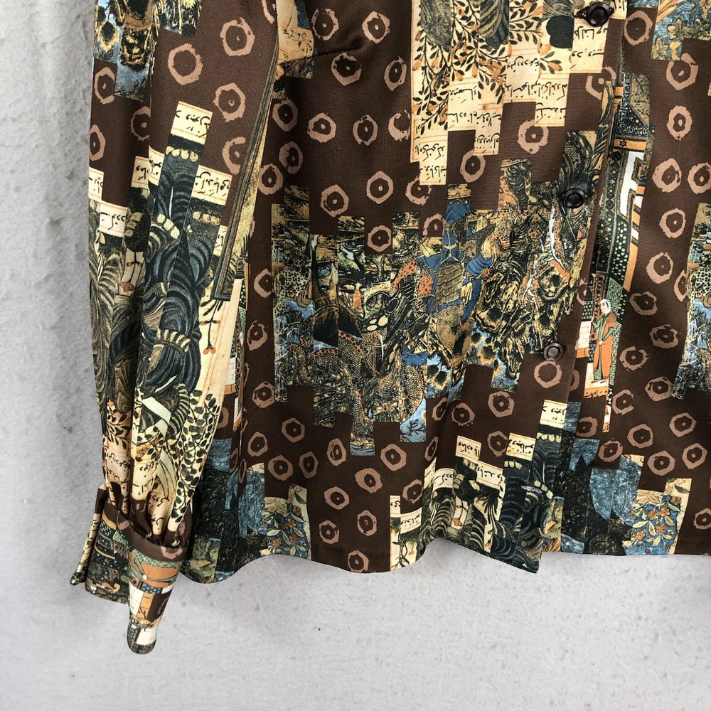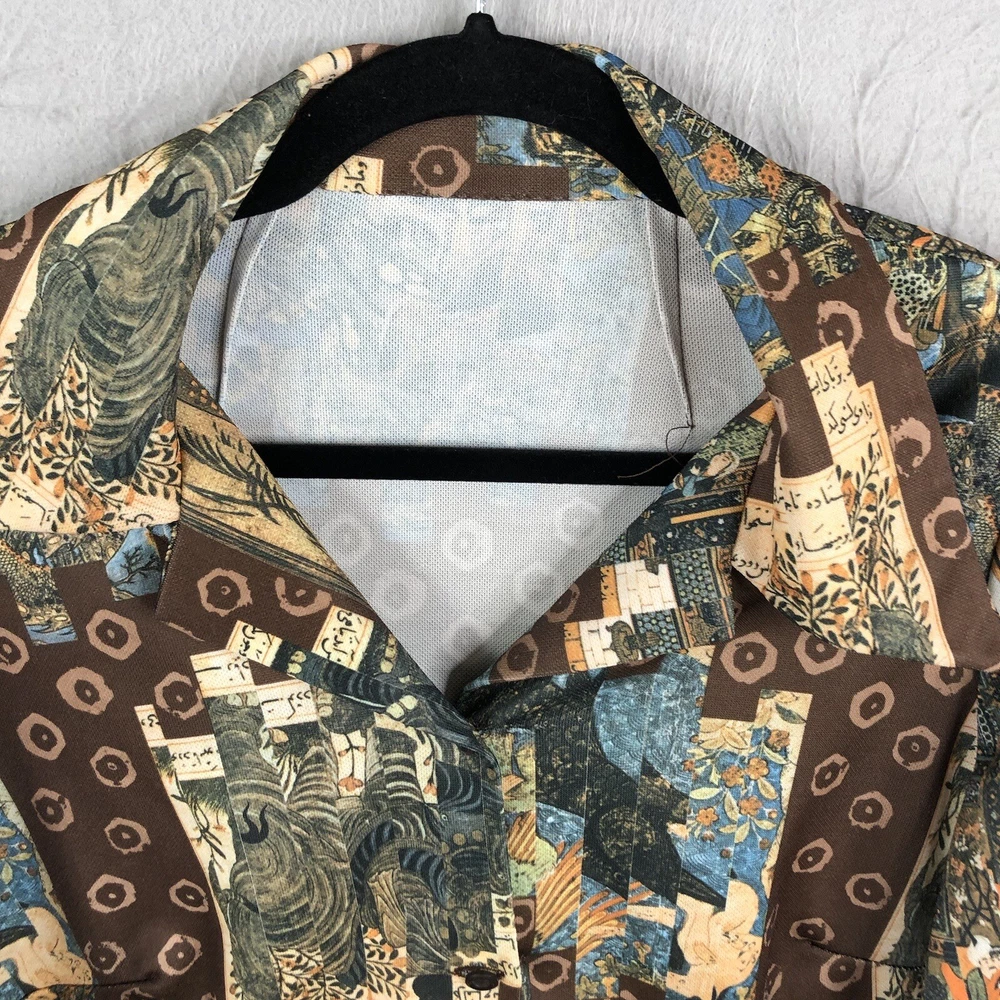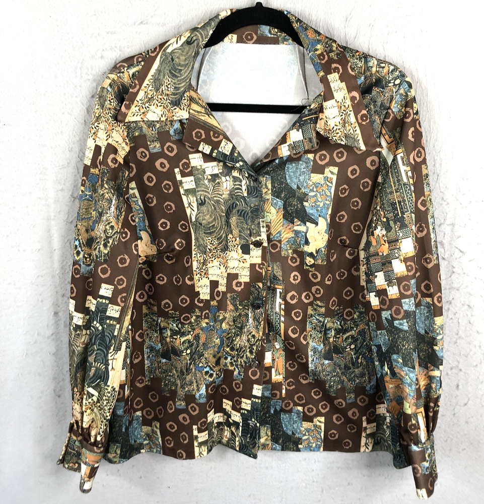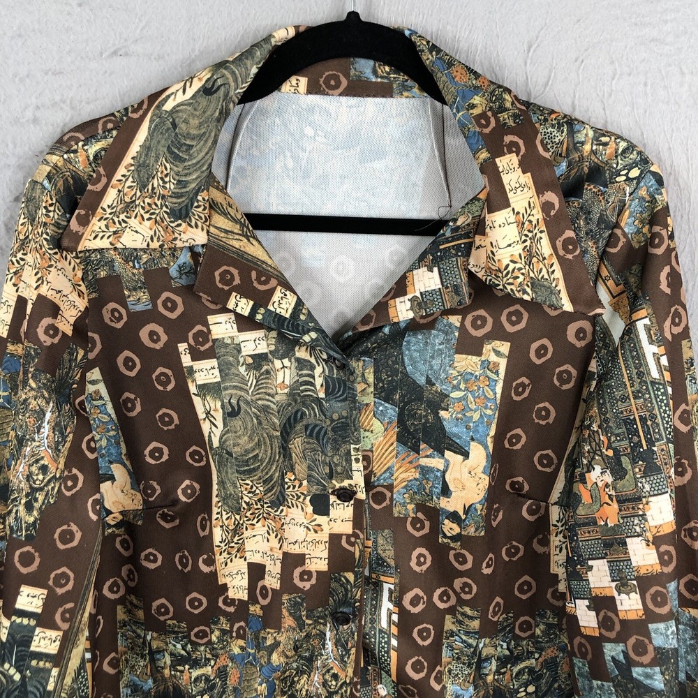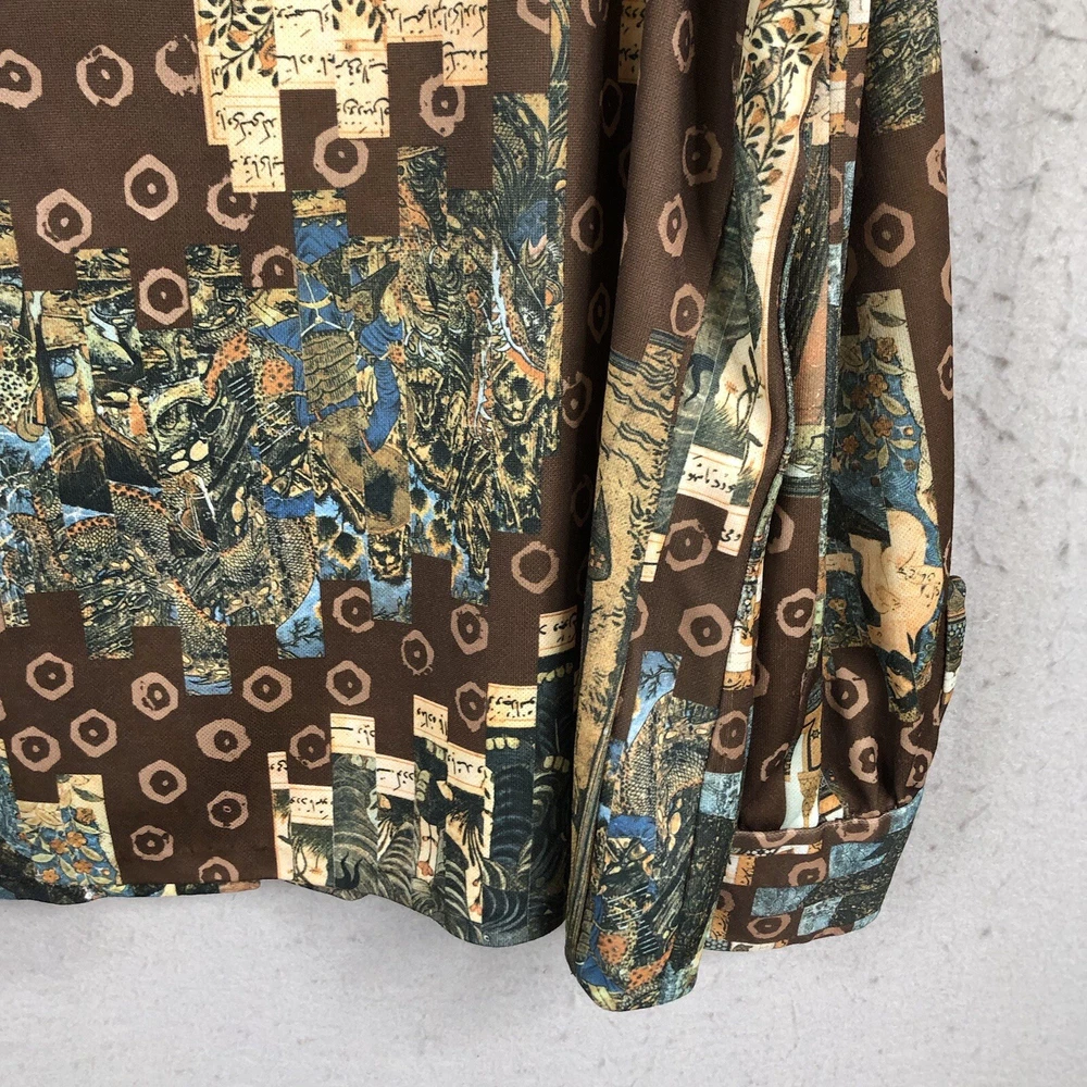 Vintage Handmade Top Womens Large Graphic Art to Wear 70s Mod Groovy Polyester Please see photos for further description and measurements. Laundered per ebay standards. No holes, stains, spots unless noted. Shop with confidence