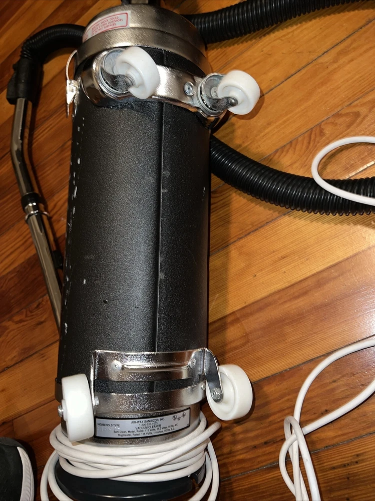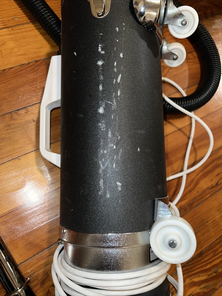 this by is Preowned and has normal storage usage and wear to it and does not have any vacuum bags. the plastic attachment has a crack on it Please look at the pictures to see what all come with vacuum and email if you have any questions