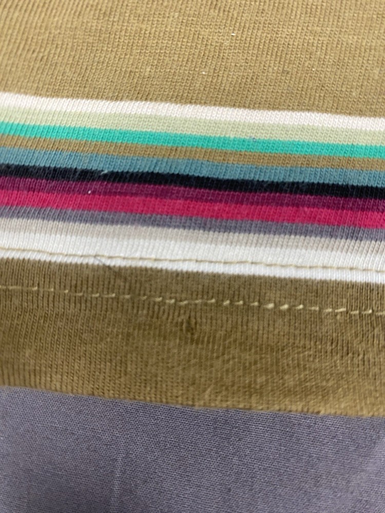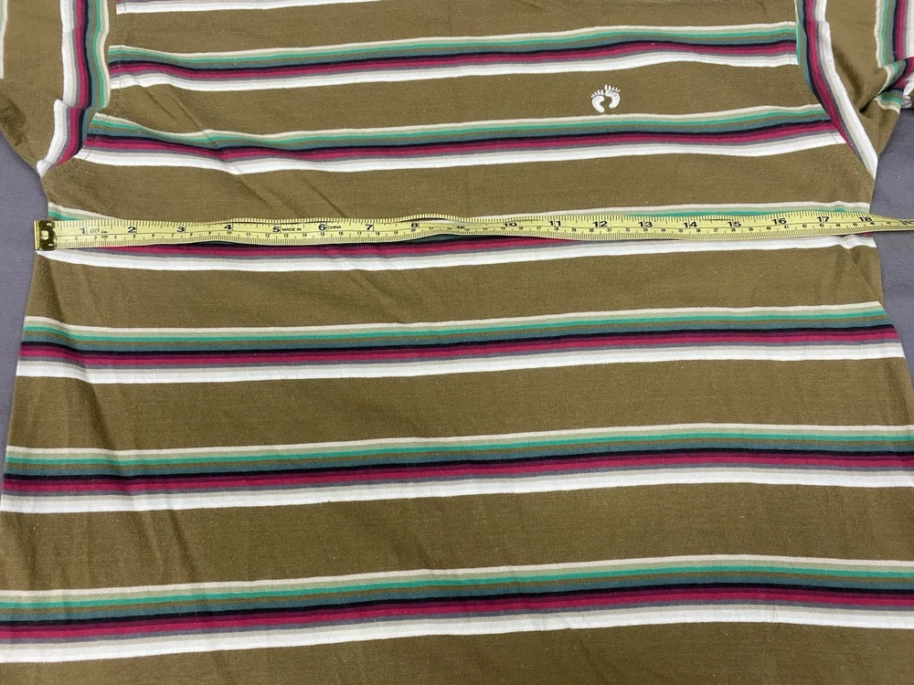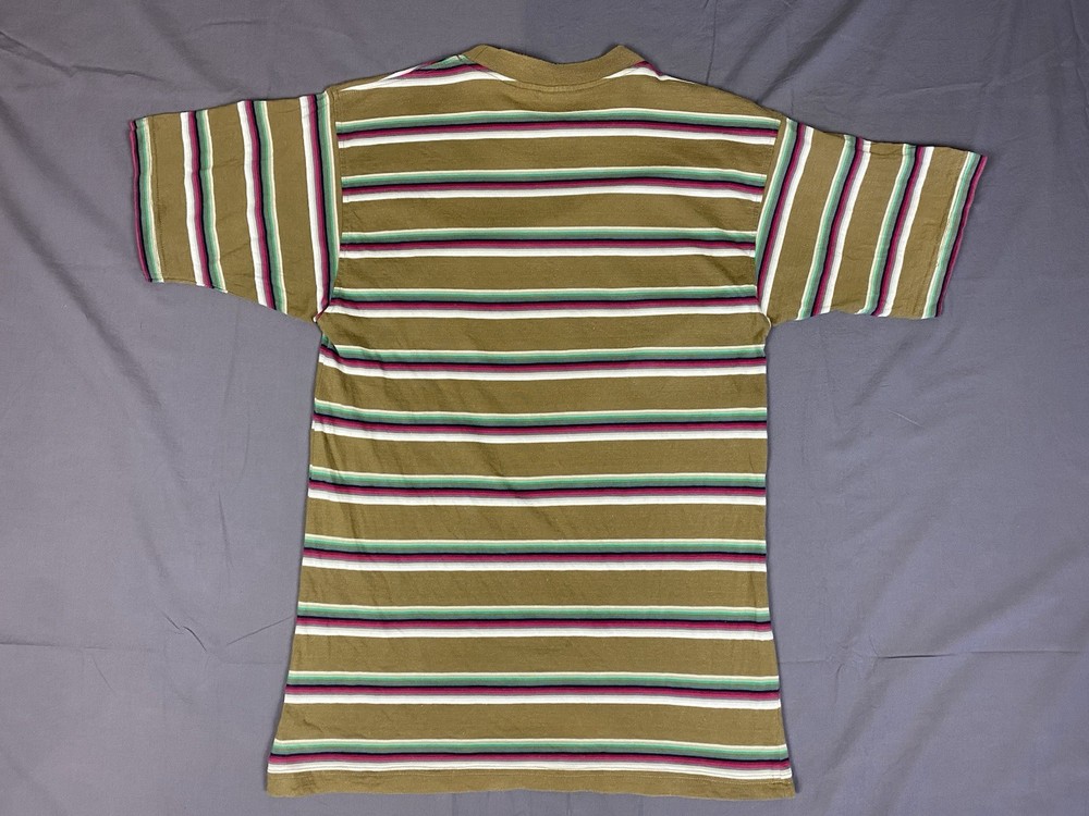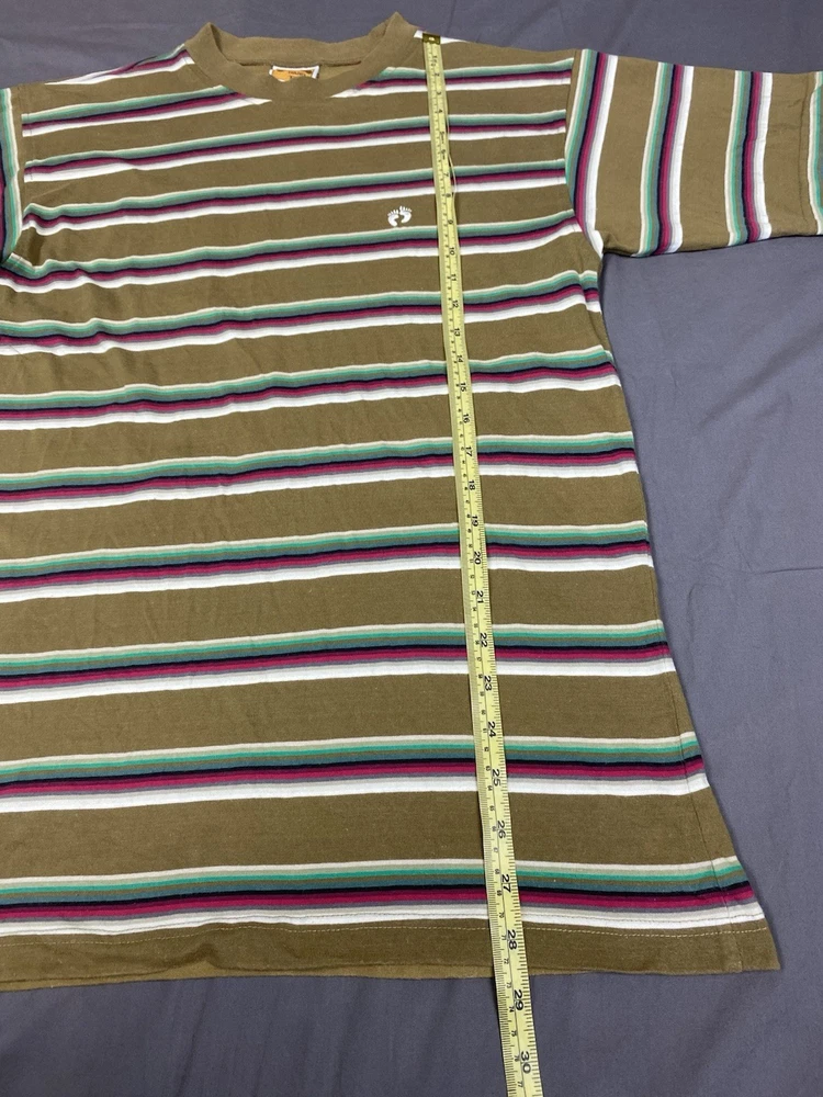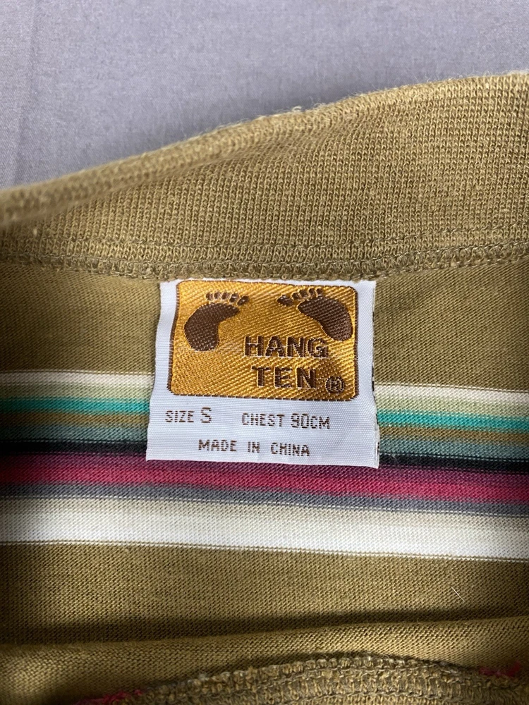 Vintage Hang Ten T Shirt Mens Small Multicoloured Striped Logo Casual Surf Skate Two very small holes on front of shirt as shown in photos. 100% cotton Measurements shown in photos.