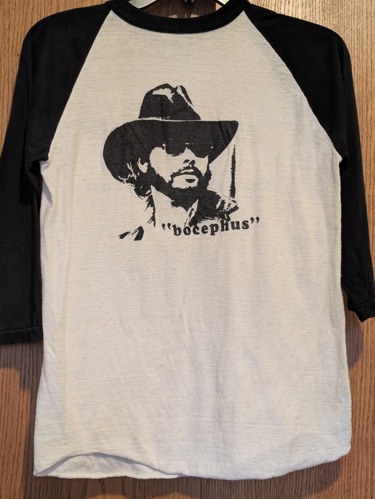 This listing features a vintage Hank Williams Jr. t-shirt from the 1980s, in great condition. The shirt is a black cotton material with a 3/4 sleeve length and a crew neckline. It is machine washable and has a regular fit for a comfortable and classic look. Perfect for fans of country music or collectors of vintage clothing, this t-shirt is a unique addition to any wardrobe.