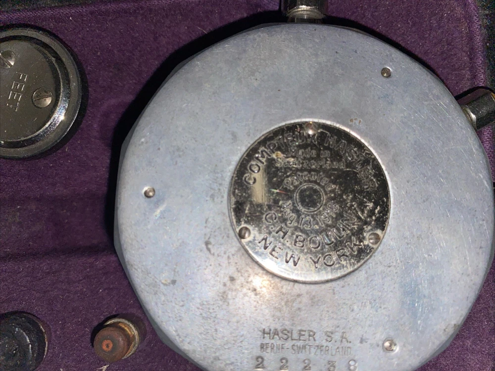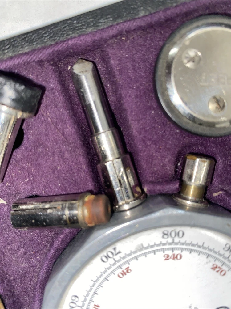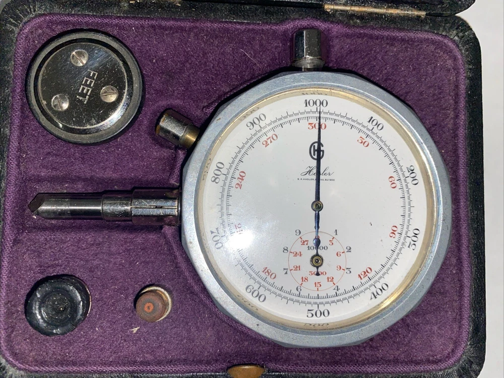 This vintage Hasler Compteur Tachometer, made in Switzerland in 1918, is a valuable collectible for any machining enthusiast. The instrument, which comes in its original case, is a true piece of history and a testament to the quality of Swiss engineering. With its precise measurements and reliable performance, this tachometer would make a great addition to any tool collection. The brand Hasler is synonymous with excellence in machining, and this instrument is no exception. Don't miss your chance to own a piece of Swiss history with this vintage Hasler Compteur Tachometer. Does not seem to work. When you press one button it ticks for a few then stops. Spinning the post does not move the dial. Selling as is as a collectible Click HERE to check out my other items!