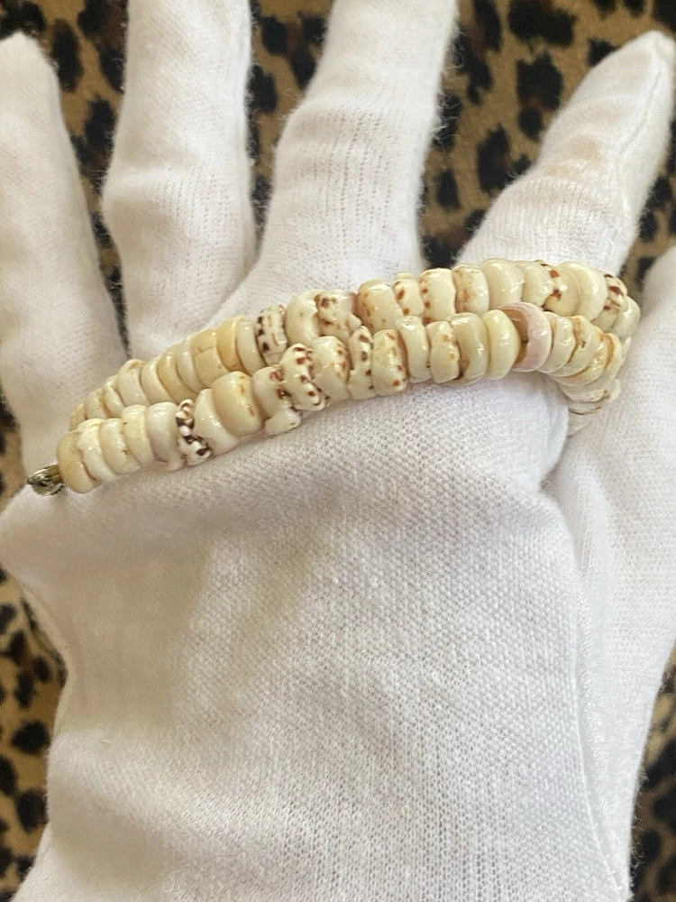 Estate Find! Vintage Hawaiian PUKA Bead Tiger Shell Surfer Necklace Barrel Clasp 16 inch This is a cool one! This would be a wonderful gift to a vintage jewelry or PUKA collector or a fantastic addition to your ever growing collection. *** I am currently listing a few more Puka necklaces so be sure to check them out. I am always happy to combine shipping! Please look at all of the images to form your own opinion as to the condition of the item. My personal opinion may differ from yours. To me, it is in groovy vintage condition -wear consistent with age. This is not a new necklace. From my experience as a kid growing up in the 70s with my own Puka necklace they were worn all the time - like ALL the time!!! Being shells, there may be slight imperfections, chips or pointy parts of the shells that are more natural and may have not been smoothed down/polished, etc. which give them character. Please carefully look over my images as you will be getting the exact necklace in this listing. I did not clean or polish the necklace. I know some folks like some patina so I leave polishing and cleaning up to the discretion of the buyer. I also did not want to ruin them with today’s harsh cleaners. For a smooth transaction, please read the entire description prior to making a purchase. Please check out all of the images as they are a major part of the description. Images may show wear/condition, details, maker mark and/or branding, approximate measurements and other details that will help you determine the condition and if this is what you were looking for. This would be a wonderful gift to a vintage jewelry collector or a fantastic addition to your ever growing collection. Prior to wearing, please get the item checked out, serviced or repaired by a professional as I can not be held responsible for how any item, clasp, stones, gems, chain, string, findings, etc. will hold up with any sort of wear. I am simply a reseller of the item. Not a jeweler or manufacturer. Thanks so much for looking! Condition : Vintage or preowned jewelry typically shows wear constant with its age. This may include things to expect such as light scratches, tarnish, in need of cleaning or polishing,etc. as it most likely has been worn and loved. That is why we love it so much. The images are a major part of the description so please zoom in and look closely so there will be no surprises and you know exactly what I am selling and you will be receiving. ** Most of the time, I try not to disturb any vintage/preowned jewelry by cleaning and/or polishing it in order to keep it in its original patina leaving it to your discretion. I do not want to take a chance ruining something. Depending on your own taste, you can either clean or polish it or keep it in its original state. My jewelry comes from estates, individual consignors, individual or bulk purchases, etc. In most cases, I do not know the history of the jewelry nor where it has traveled or been stored. Most importantly, I have no idea if it has been around pets, smoke, air fresheners or any sort of allergen or if it smells. (I do not smell jewelry) Thanks so much for looking! Disclaimer: Some images may have been magnified to show you details. I often use a penny as a prop to help you gauge the size. The penny and any prop, mannequin or measuring/weighing tool are not part of this listing - only the item mentioned in the title is for sale. Unless mentioned in the written description, the colors on my screen are the colors of the piece as I see it. Before making a purchase, you are accepting the fact that your device or computer screen may show a different color. Shipping: This item will be sent out with delivery confirmation and insurance to an eBay supplied address only. If you need the item to be shipped elsewhere, please change the address in eBay prior to completing your purchase. For international shipping, I use the eBay Global shipping program. All shipping, taxes, customs or anything else is taken care of and determined by eBay as I simply send items to a US shipping hub per the Global shipping agreement.
