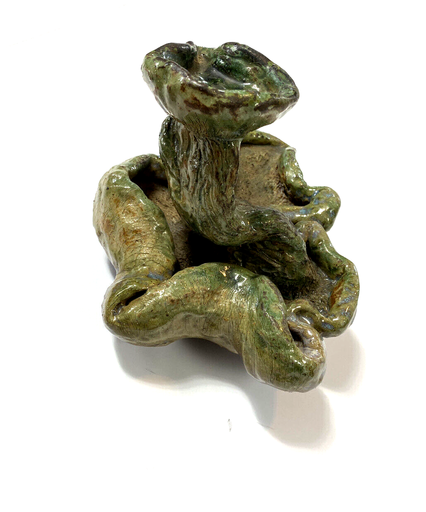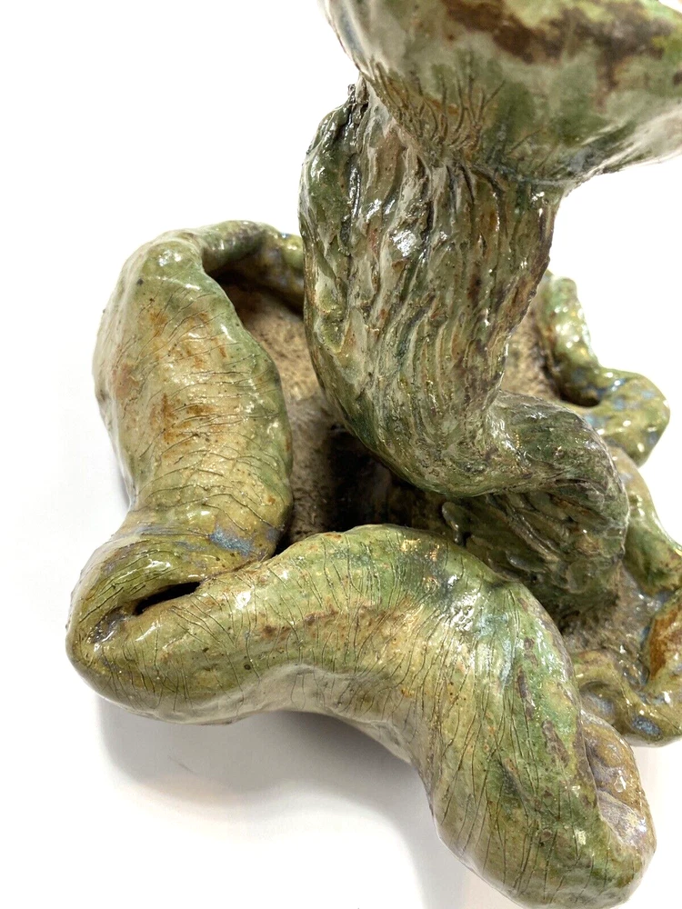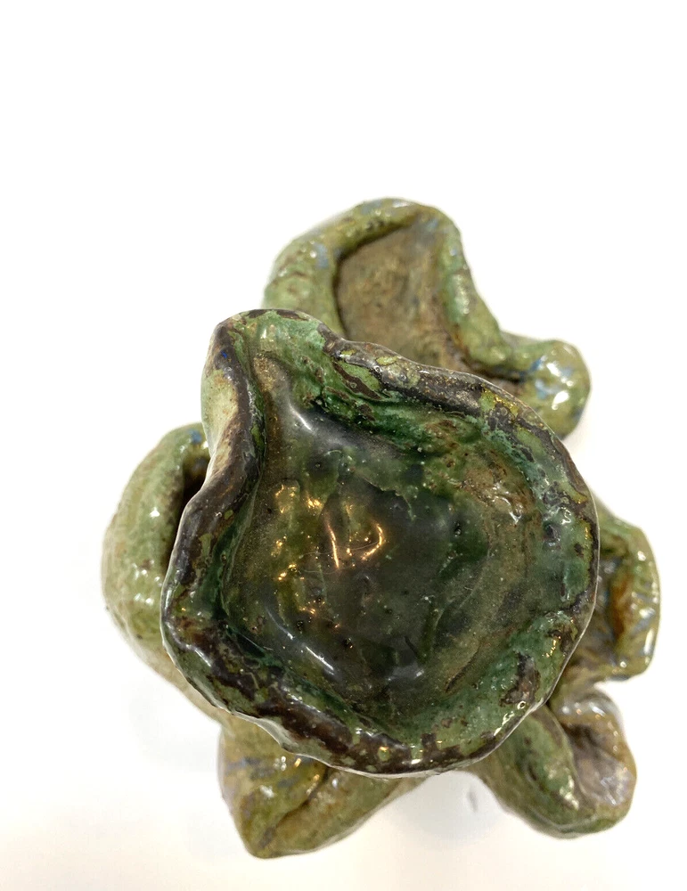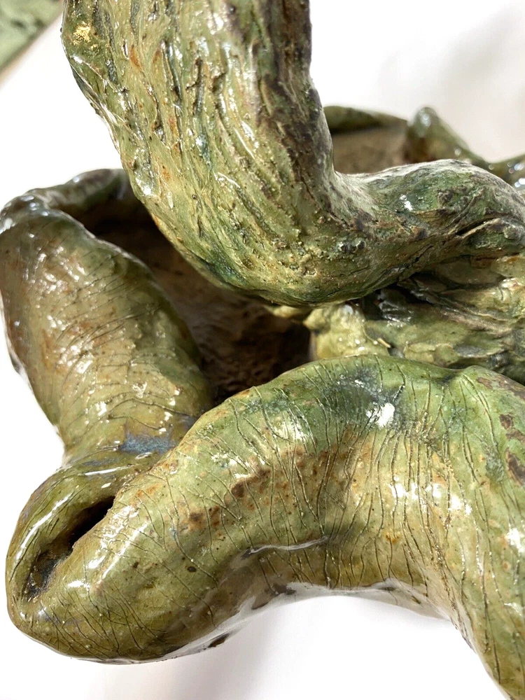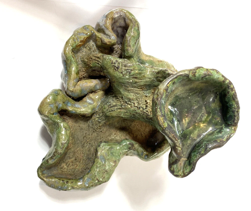 FAST SHIP. ---------------- Vintage Heavy Figural Clay Scultpure Raku Handmade Forest Leaf Woods Abstract Excellent vintage condition- no significant damage. 10" tall, 8" wide, and 9" deep ofgdl0529