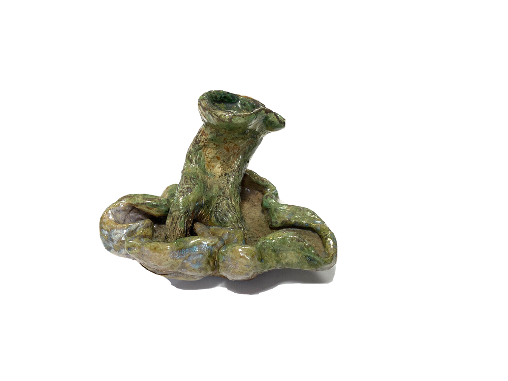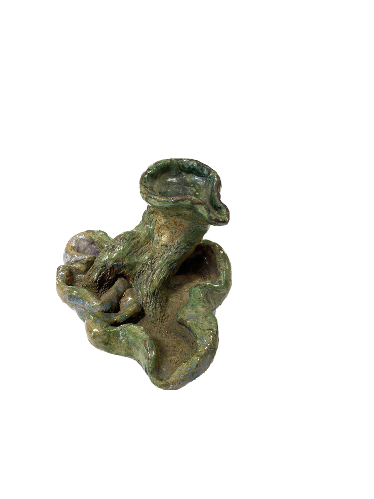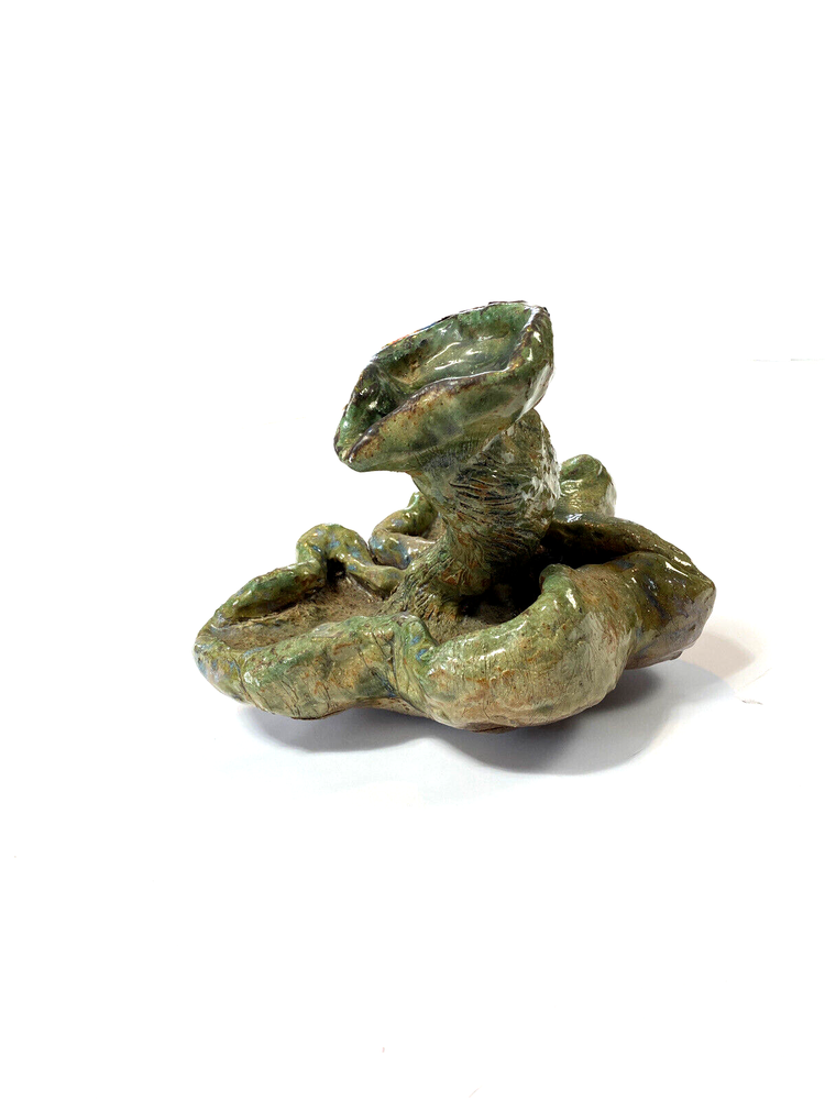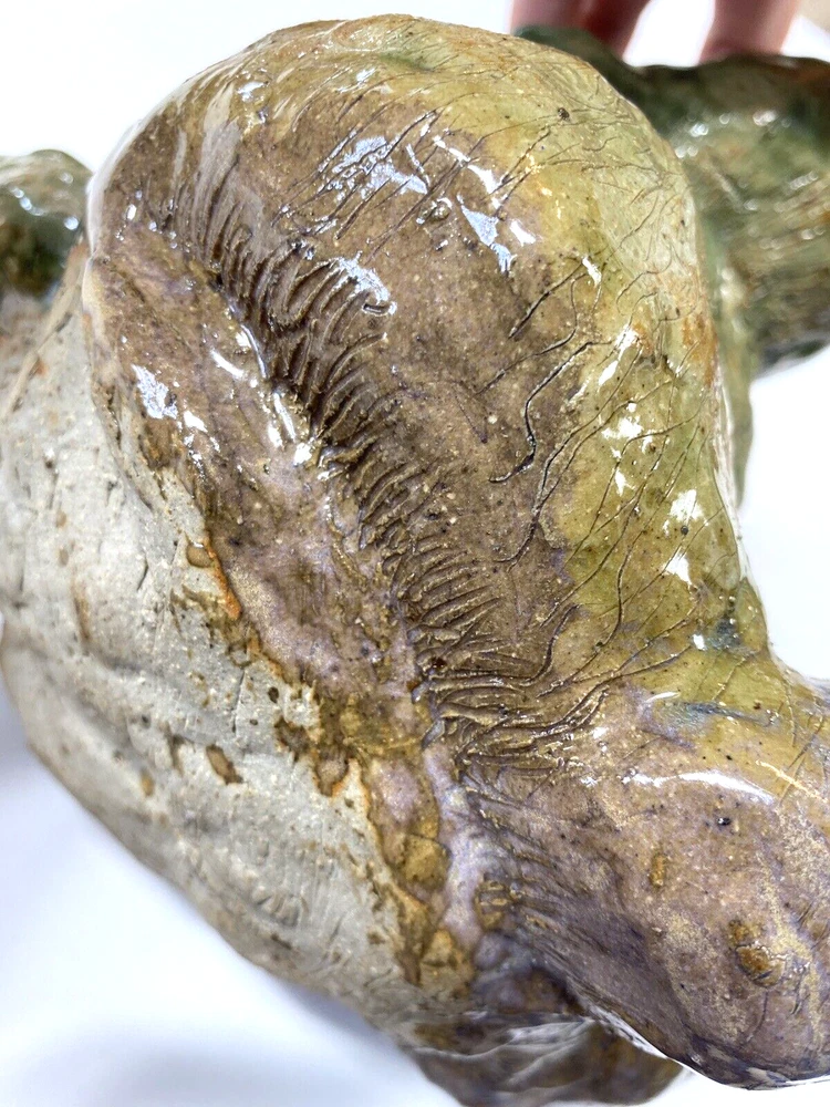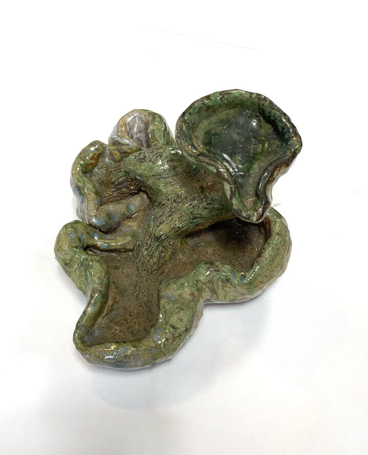 FAST SHIP. ---------------- Vintage Heavy Figural Clay Scultpure Raku Handmade Forest Leaf Woods Abstract Excellent vintage condition- no significant damage. 10" tall, 8" wide, and 9" deep ofgdl0529