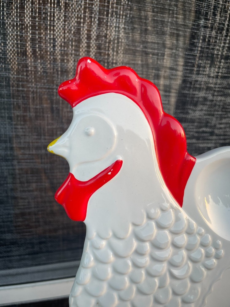 Vintage MCM DEVILED EGG PLATE Relish Dish Country Farmhouse Rooster Chicken