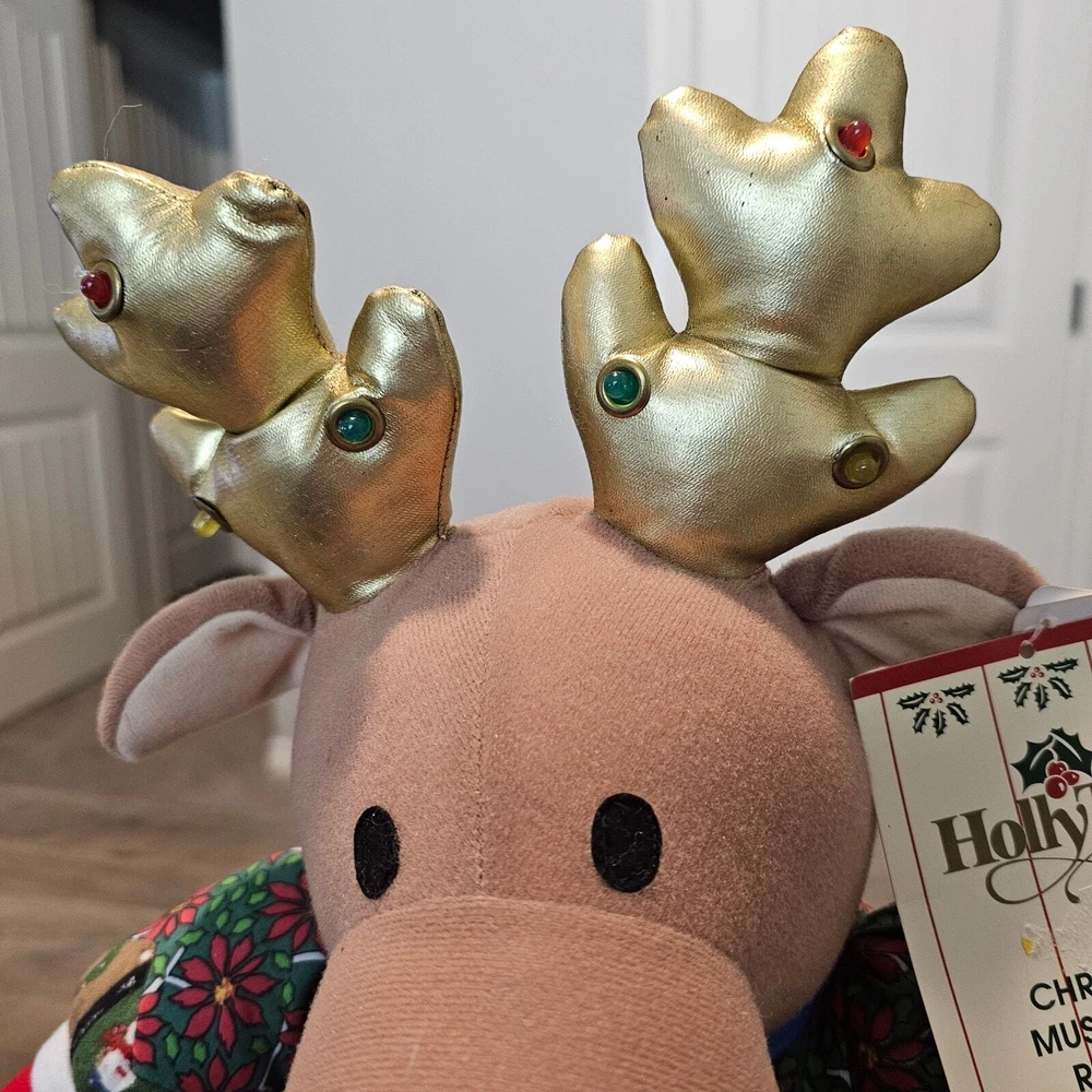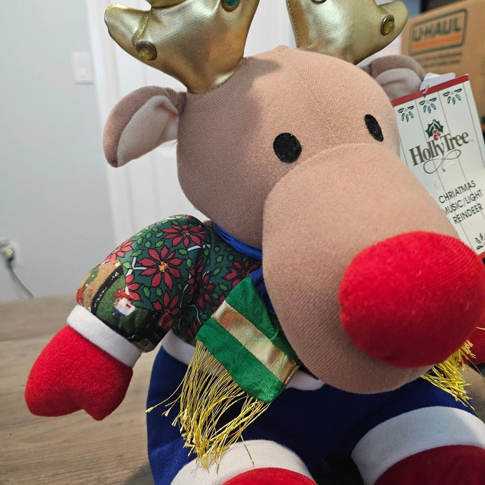 Vintage Holly Tree Christmas Music/ Light Reindeer Toy 13" 8+ Songs WORKS 80s Great Condition with original tags! -Plays over 8 Christmas songs and light ups on the antlers -Reindeer wearing Christmas clothes and plays music and lights up -Battery-operated , does not come with batteries. Measurements in photos. Same day / next day shipping Offers accepted Like for price drops and deals Bundle 2 items or more and save! Thank you! 1lb