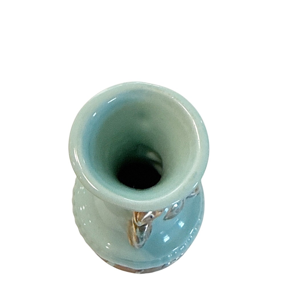 Add a touch of vintage glamour to your home decor with this stunning 24kt gold vase. With its textured surface and weeping gold design, it's a one-of-a-kind piece that will catch the eye of any visitor. Measuring 7.5 inches in length and 3.2 inches in width, it's the perfect size for displaying your favorite flowers or as a standalone decorative item. Crafted by hand in the United States during the 1960s, this original Hollywood Regency vase is a must-have for any collector. Its gold finish and elegant style make it suitable for all occasions and it will surely be a conversation starter in any room. Care instructions include hand wash only to maintain its quality. Smoke free home Please visit my store at https://www.ebay.com/str/theuniqueredhead . Thank you for your consideration. Please message me if you have any questions. I do combined shipping on my items in the store.