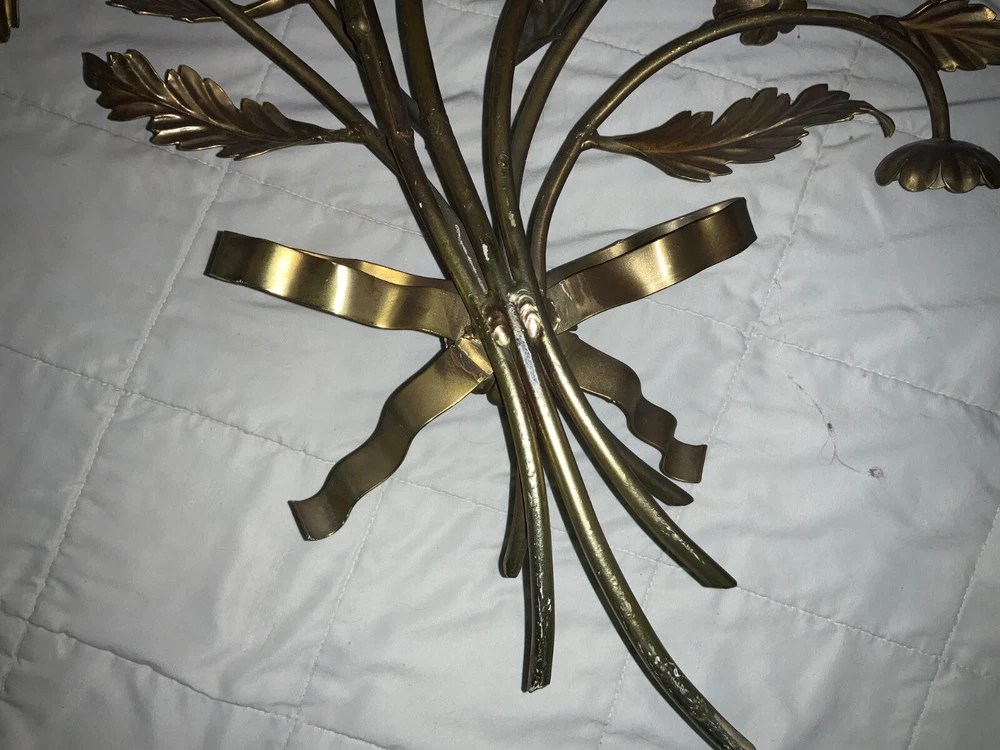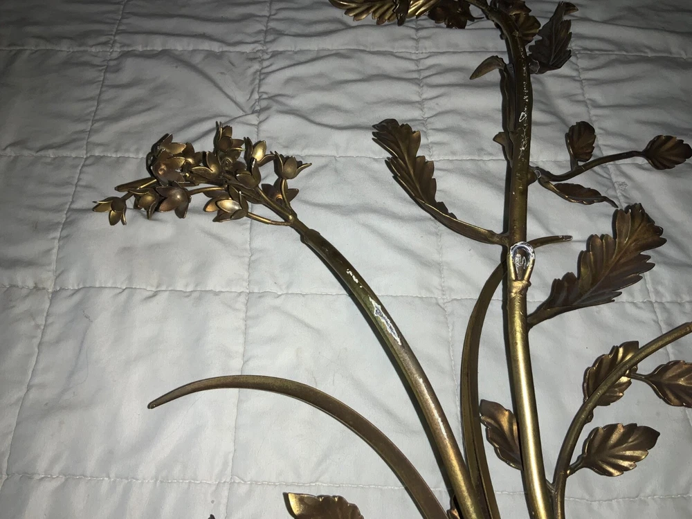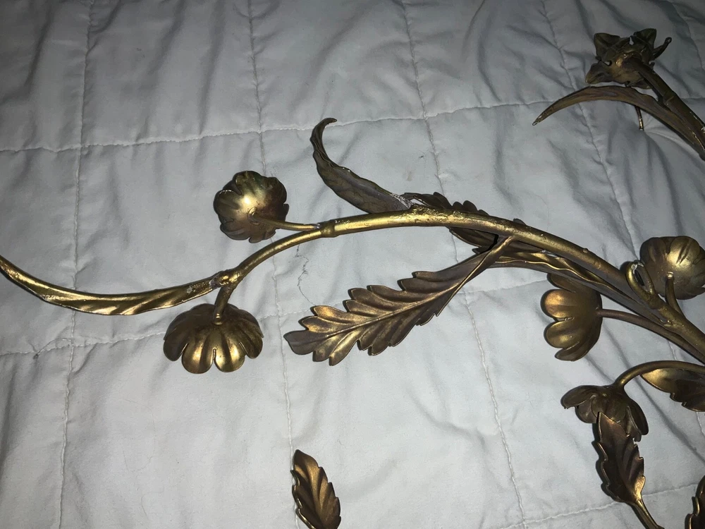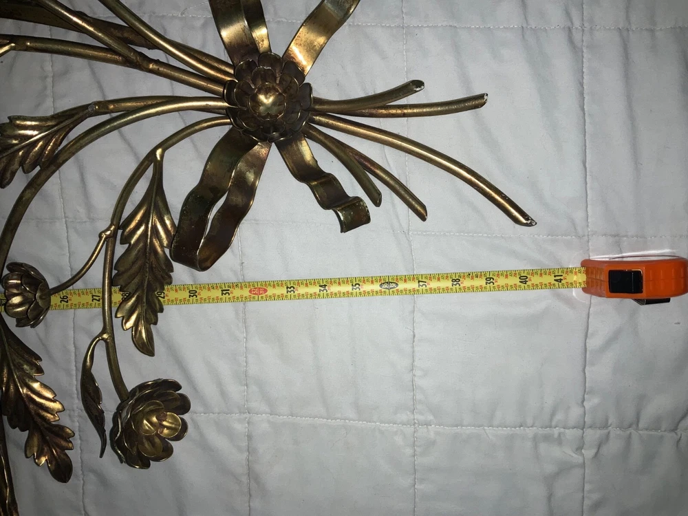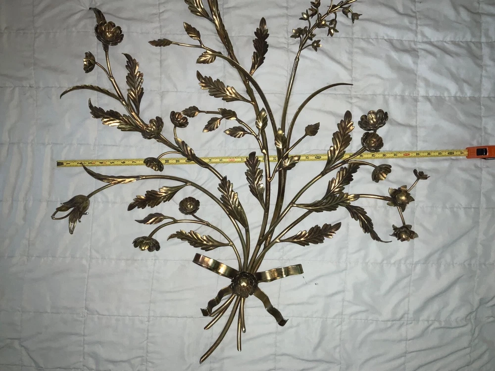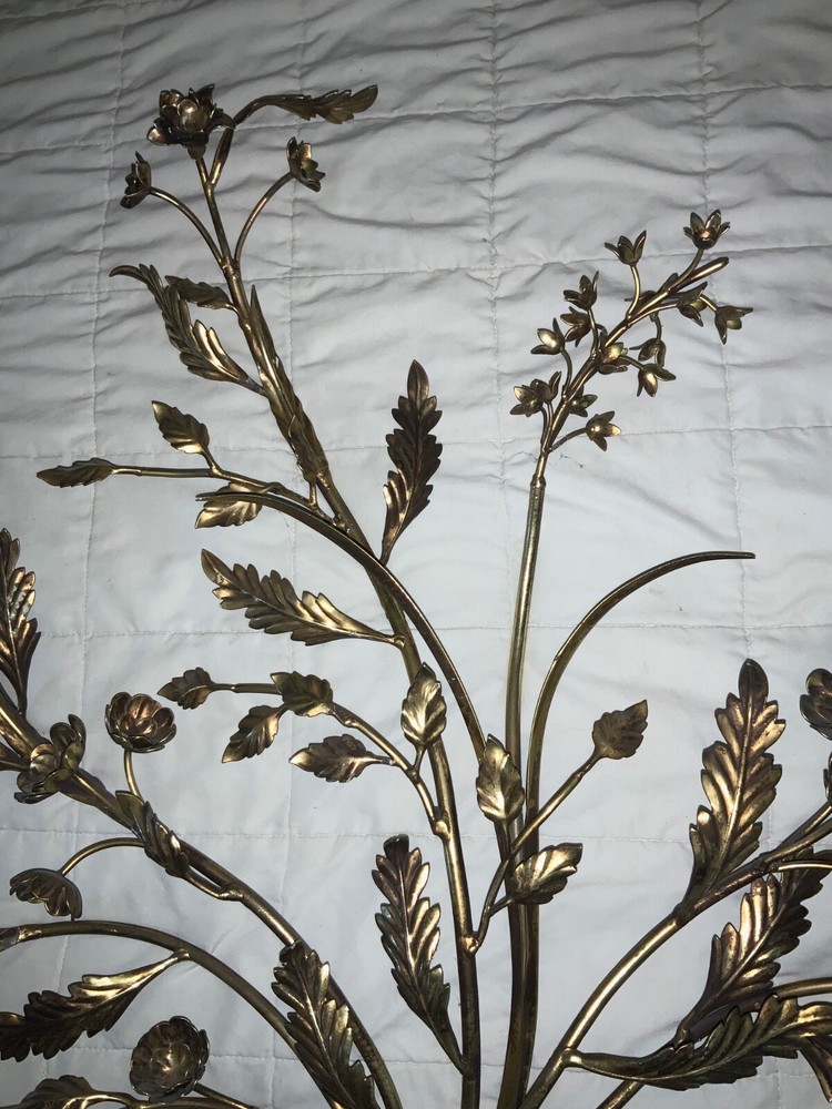 This vintage Italian Hollywood Regency Style gold gilt tole wall art measures 41 x 34 inches, making it a large and eye-catching piece for any home decor. The rich gold color and intricate design give it a luxurious and elegant look, perfect for adding a touch of old-world charm to a space. Made of tolewear metal, this post-1940 piece showcases the sophisticated style and craftsmanship of Italian design. Ideal for collectors of decorative art, this unique and original piece is sure to be a standout addition to any collection. Please see pics for dimensions and condition. Message me with any additional questions of for more photo’s. Item is heavy weights 8.8 lbs.