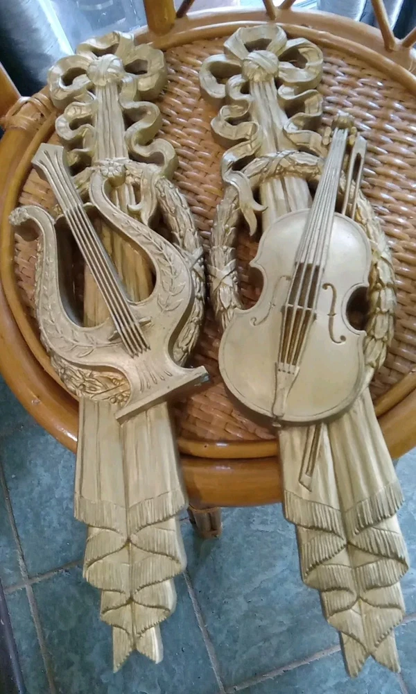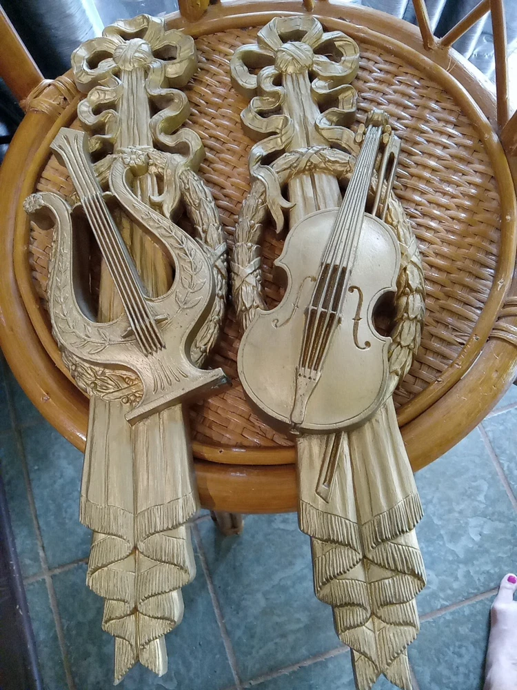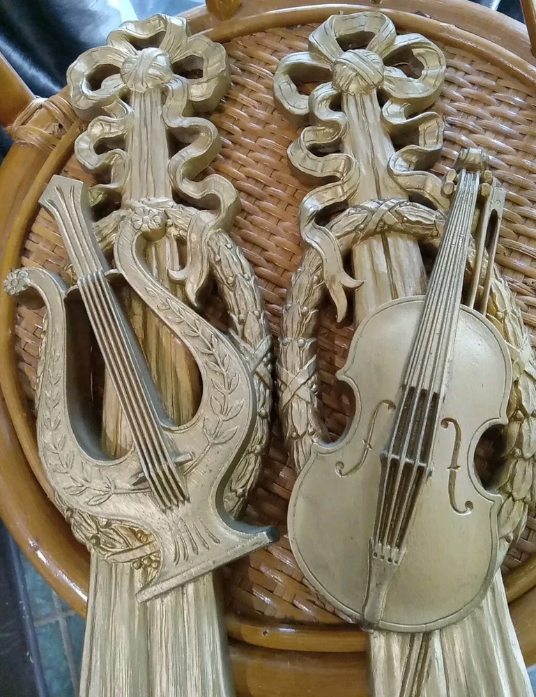 Add a touch of elegance to your home with this vintage Burwood musical wall art. The rectangular medium-sized plaque is made of gold-painted plastic and features a beautiful musical instrument design of a violin and harp. This mid-century modernism style piece is perfect for wall mounting and suitable for any room. The intricate details of the musical instruments are sure to catch the eye of any music lover. The plaque is an original piece from the 1970s and was manufactured in the United States. Bring some musical charm to your home decor with this unique vintage find. More selections available at my ebay store.
