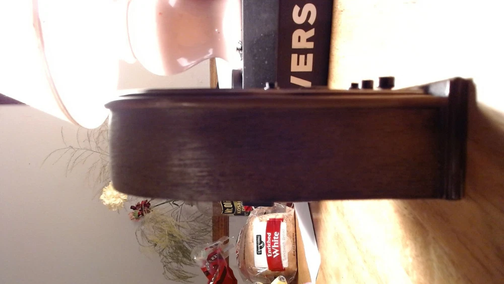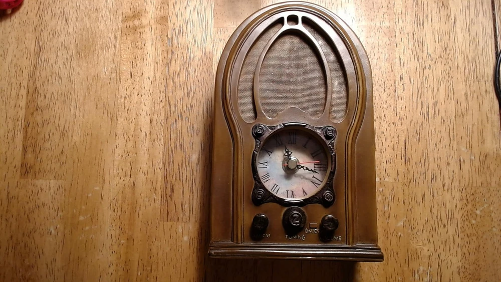 Great looking clock in the form of a vintage radio - Item is heavy, made up of mainly plastic & ceramic material, this is just a cool looking clock with some wear - clock works with a second - made in china please see pics - the last pic shows the length of the clock This is a clock only and not a radio