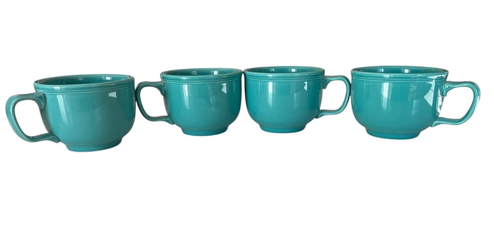 Vintage Homer Laughlin HLC Fiesta Ware Soup Mug Jumbo Cup Turquoise Set Of 4