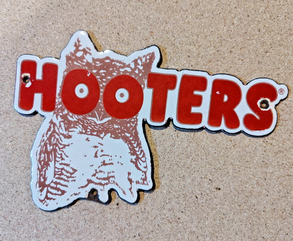 Vintage Hooters Porcelain Cat Metal Sign 9x6 Inches Restaurant Decor