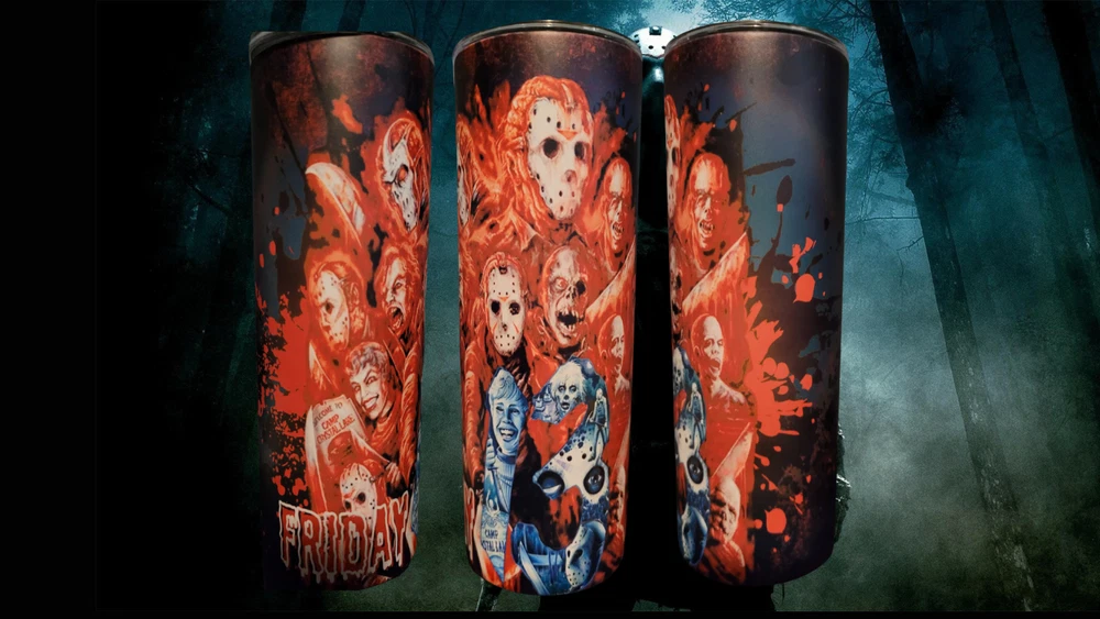Old-School Horror Stainless Steel Tumblers | 1968-1988 Classic Movies | 20oz & 30oz Relive the golden era of horror with our Old-School Horror Tumblers! These premium stainless steel tumblers celebrate the most iconic horror films from 1968 to 1988, featuring legendary classics and unforgettable franchises . From The Exorcist and Carrie to Friday the 13th , Nightmare on Elm Street , Halloween , Evil Dead , Poltergeist , and more, these tumblers are the ultimate tribute to the era that defined fear. 🔪 Features: Two Sizes Available : Choose between 20oz or jumbo 30oz , perfect for any beverage. Exceptional Insulation : Double-wall design keeps drinks hot for 8+ hours or cold for 12+ hours , so your coffee stays as strong as Regan's head-spinning performances. Durable Build : Crafted from stainless steel for long-lasting quality and durability; like Jason's machete. Practical Accessories : Each tumbler includes a hard plastic lid and a reusable metal/hard plastic straw for eco-friendly convenience. Unique Artwork : Features original, hand-applied designs highlighting horror icons like Michael Myers , Jason Voorhees , Freddy Krueger , and many more. Handcrafted Excellence : Every tumbler is meticulously handmade to order, ensuring top-notch craftsmanship. 🎥 Perfect for Horror Fans & Collectors : Whether you're sipping hot cocoa during The Exorcist’s chilling moments or enjoying iced tea while Freddy Krueger haunts dreams, these tumblers are a stylish homage to classic horror. 📦 Care & Shipping: Care Instructions : Hand wash only to preserve the vibrant, high-quality designs. Secure Packaging : Carefully wrapped and boxed to ensure safe delivery. 🕸️ Celebrate the screams and unforgettable moments of horror from 1968 to 1988 with a tumbler that’s as timeless as the movies themselves. Order yours today and bring the terror to life (without spilling your drink)!