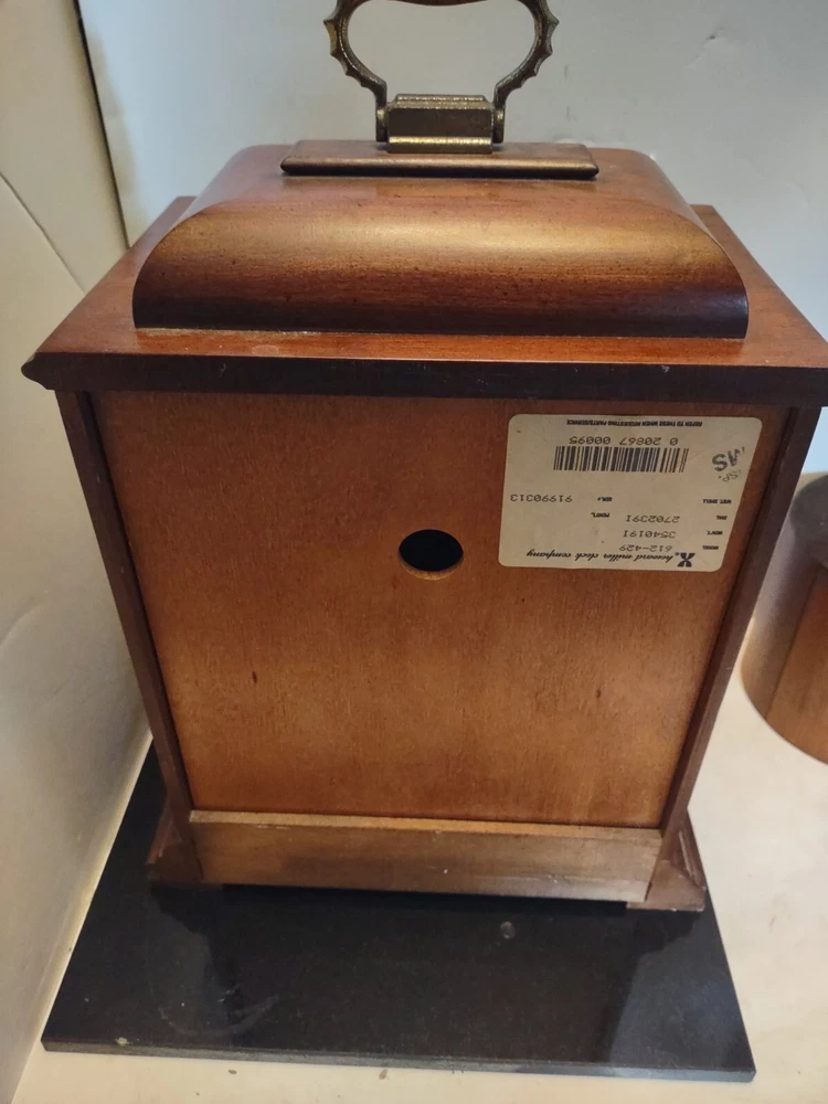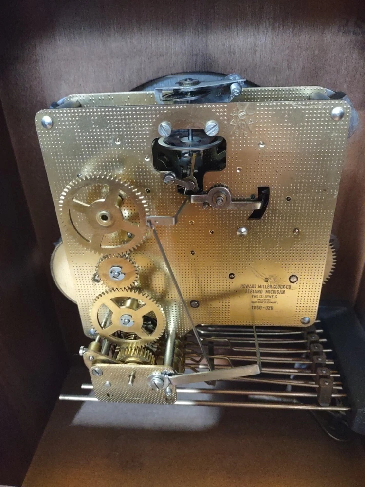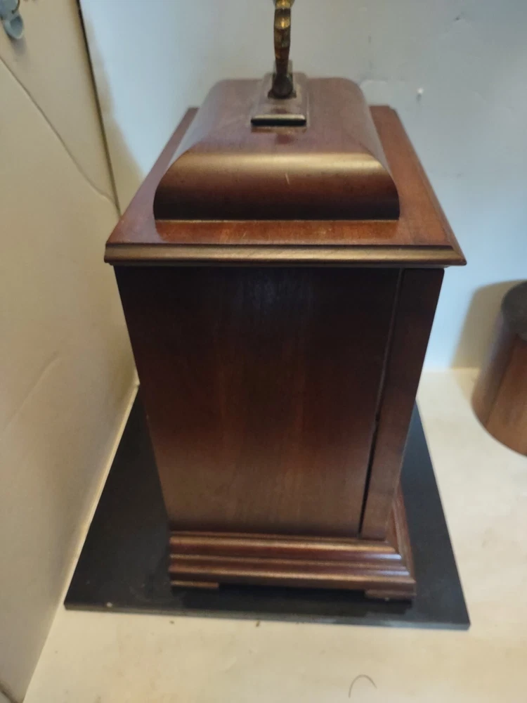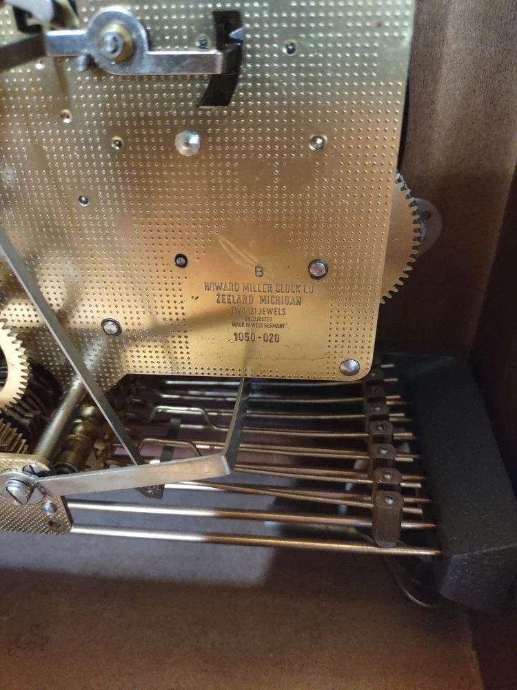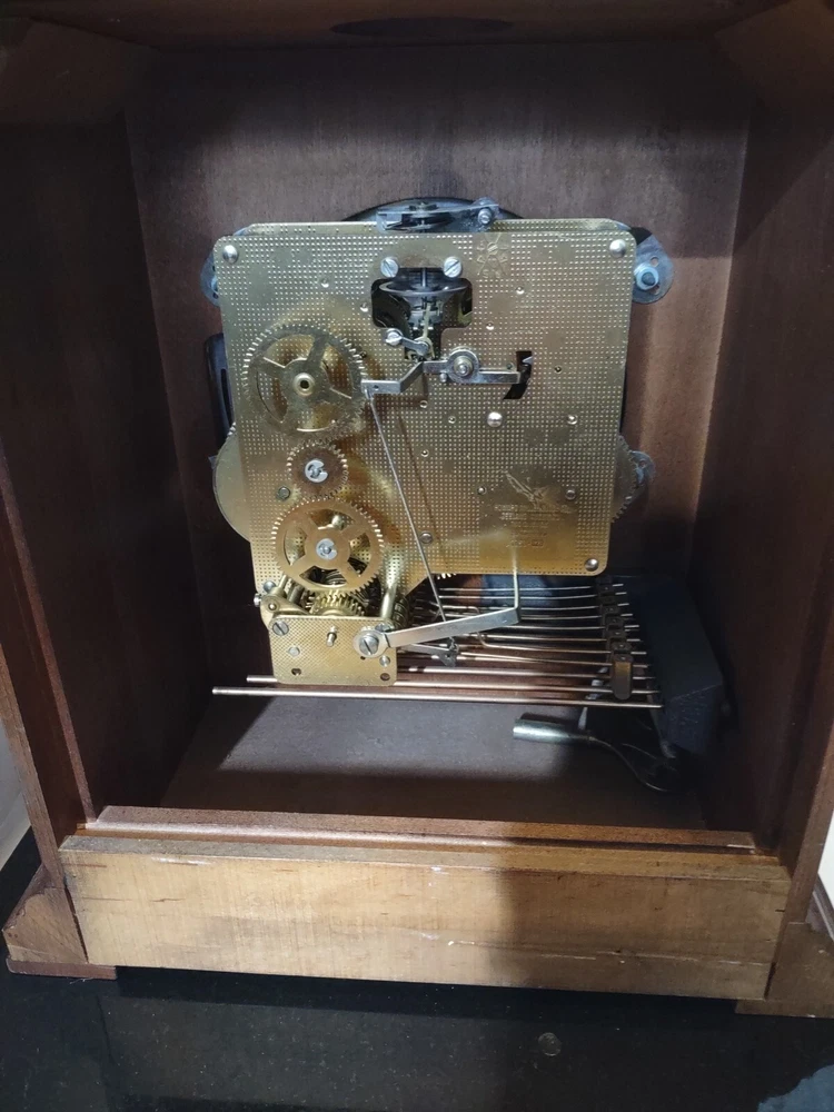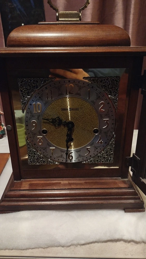 This stunning vintage Howard Miller mantel clock is a true gem for any collector or admirer of mechanical clocks. The clock features a beautiful wooden frame and a key wind mechanism that plays St. Micheals, Westminister, and Whittington chimes. Measuring 14-3/4" in height, 10-3/4" in width, and 871/4" in depth, this clock will make a stunning addition to any space. Beautiful pre-owned estate find in perfect working condition has been tested with key see pictures for details perfect for any clock collector beautiful display piece could make a great gift shipped right out USPS ground advantage With its classic design and high-quality craftsmanship, this Howard Miller clock is a must-have for any clock enthusiast. The clock is in excellent working condition and will keep time for 8 days. Don't miss your chance to own this unique and timeless piece of history.
