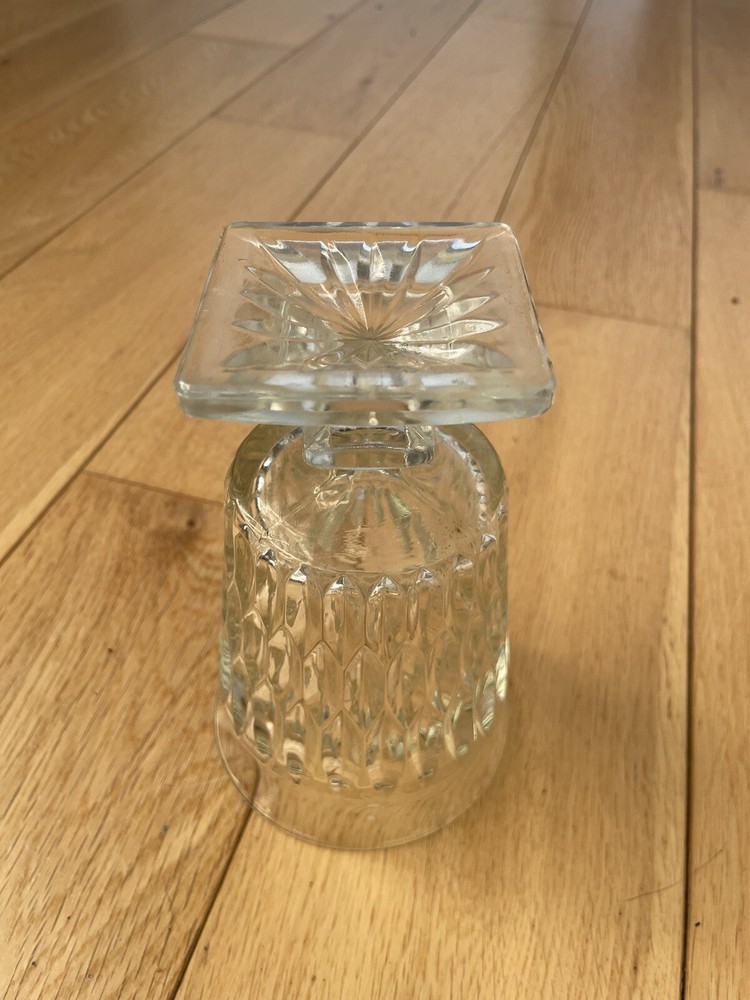 This vintage Mount Vernon candy dish by Indiana Glass Company is a round pedestal bowl with a lid, perfect for storing and displaying sweets. The design features a cut glass pattern in clear glass, giving it a timeless mid-century modern style. The dish is dishwasher safe, making it easy to clean and maintain. A lovely addition to any home, this covered candy dish is both functional and decorative, ideal for serving treats in style.