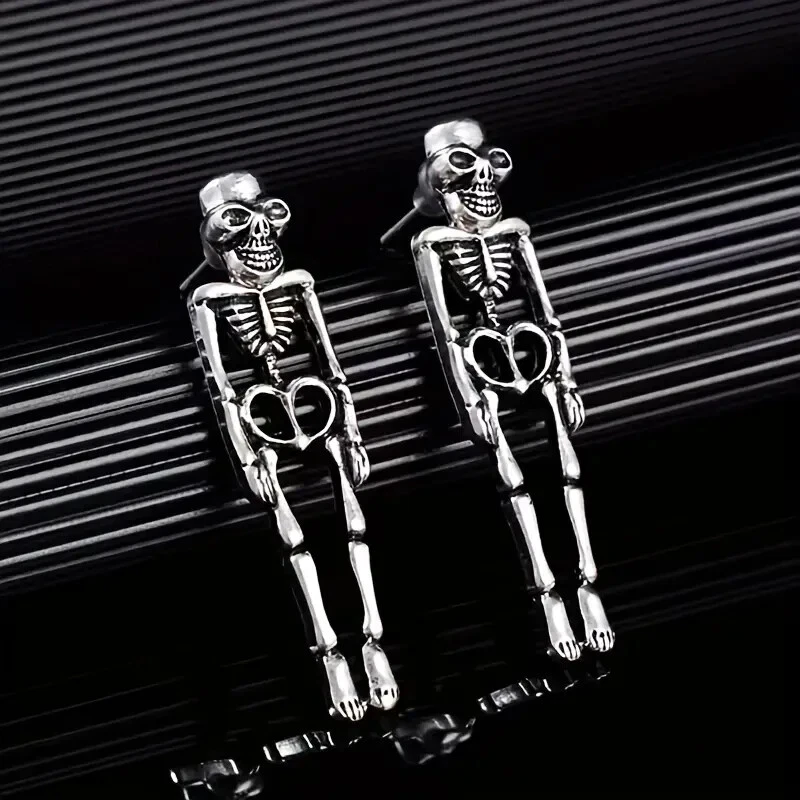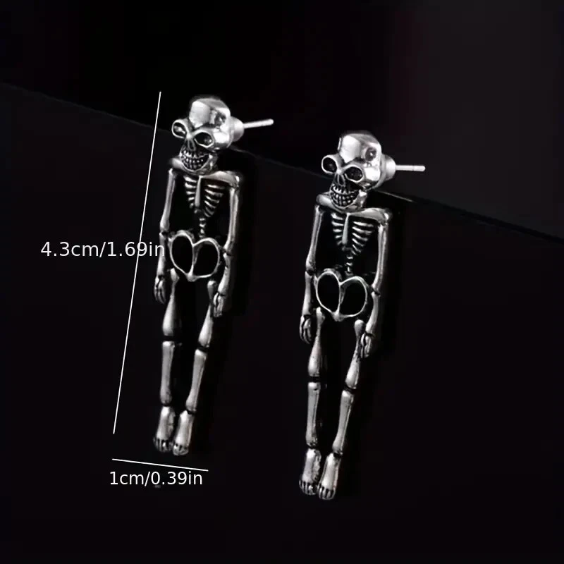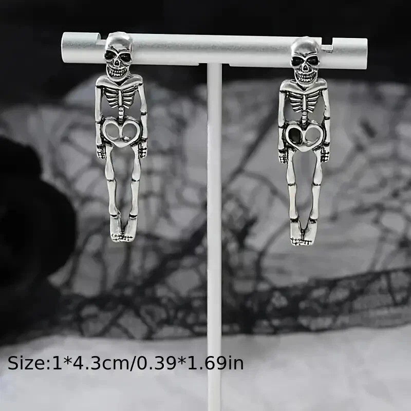 Add a spooky touch to your Halloween outfit with these design dangle earrings. The earrings feature a silvery skeleton design that is perfect for a gothic style. Ideal for Halloween. Whether you are dressing up for a costume party or just want to add a touch of creepiness to your outfit, these earrings are sure to make a statement. With their unique design, they are a great addition to any jewelry collection.