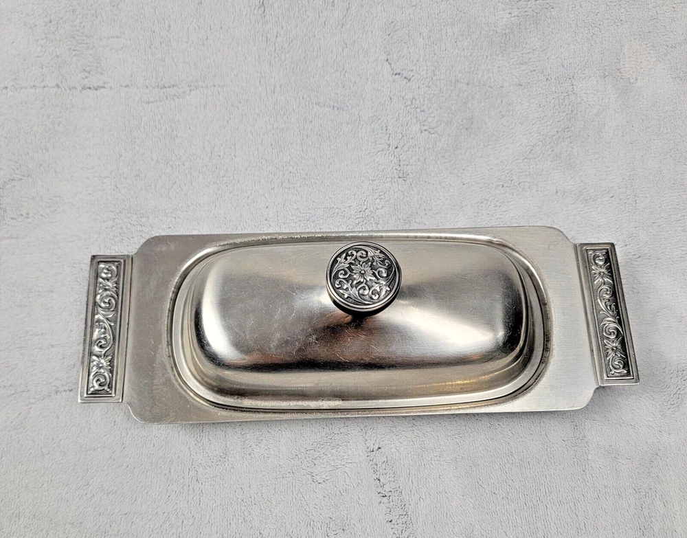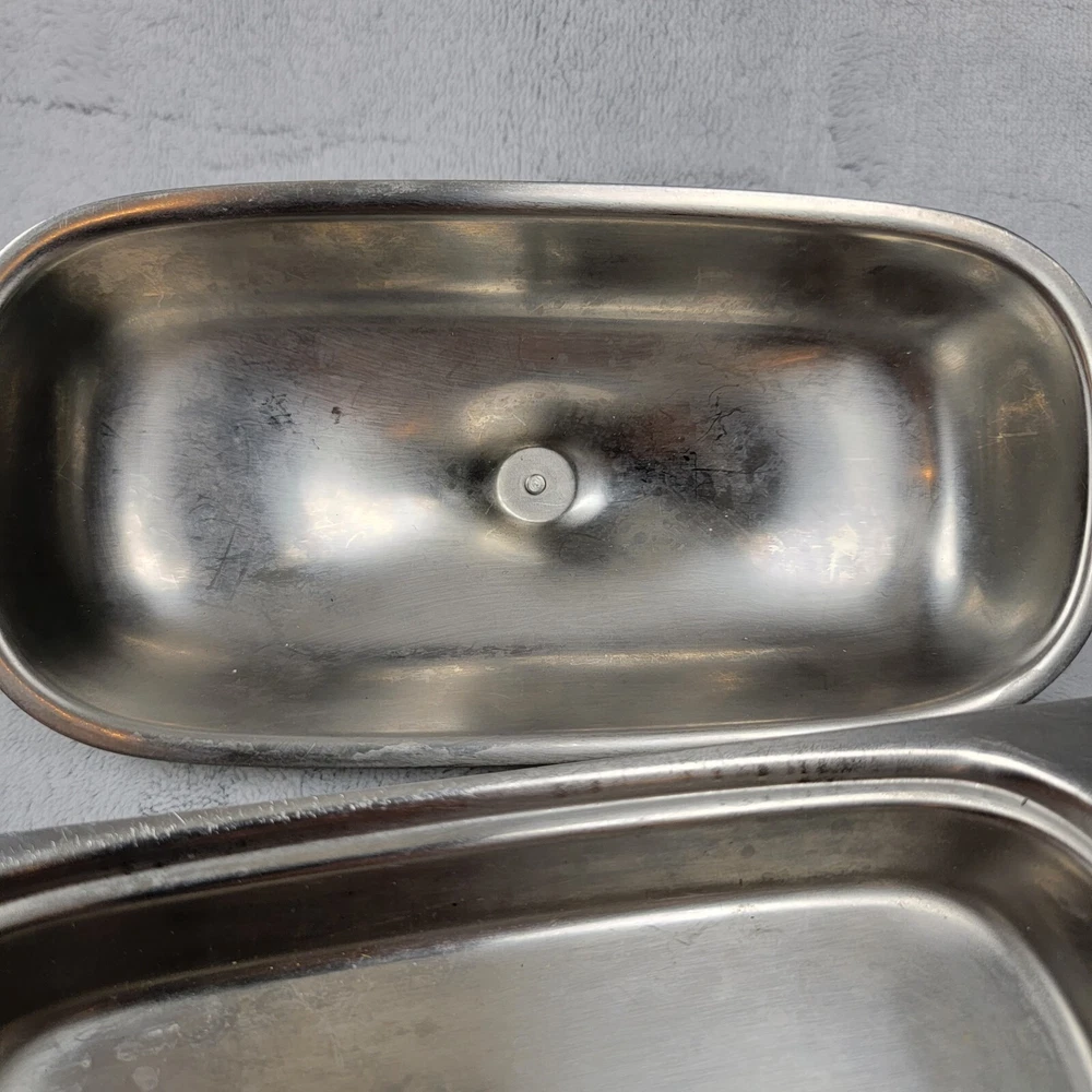 International Decorator 18-8 Stainless Set Vintage Covered Butter Dish Relish. Some scuffs but otherwise in great Shape Please see photos for exact item you will purchase Thanks for looking Fast Shipping