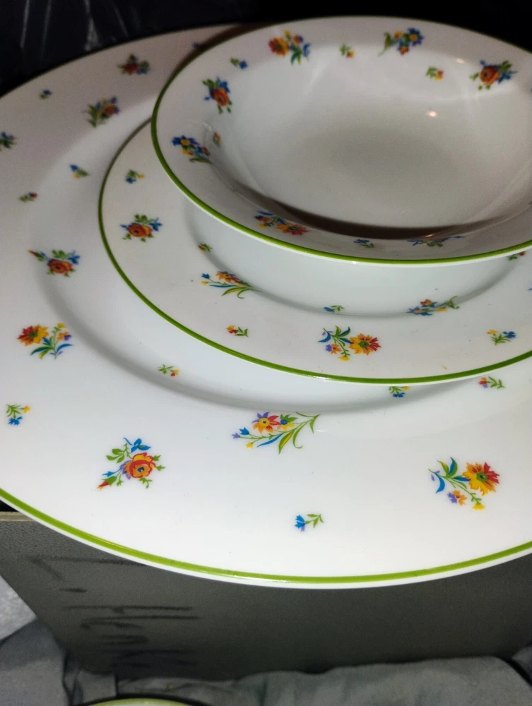This vintage collector plate set from International China features the Fleurette 470 pattern, with intricate floral designs on porcelain and bone china. The art glass production style and fused glass production technique make this set a unique addition to any collection. The plates originate from early 20th century China and were manufactured between 1920-1929. They showcase a culture of American origin and are perfect for collectors of decorative plates. Add this beautiful set to your collection today!