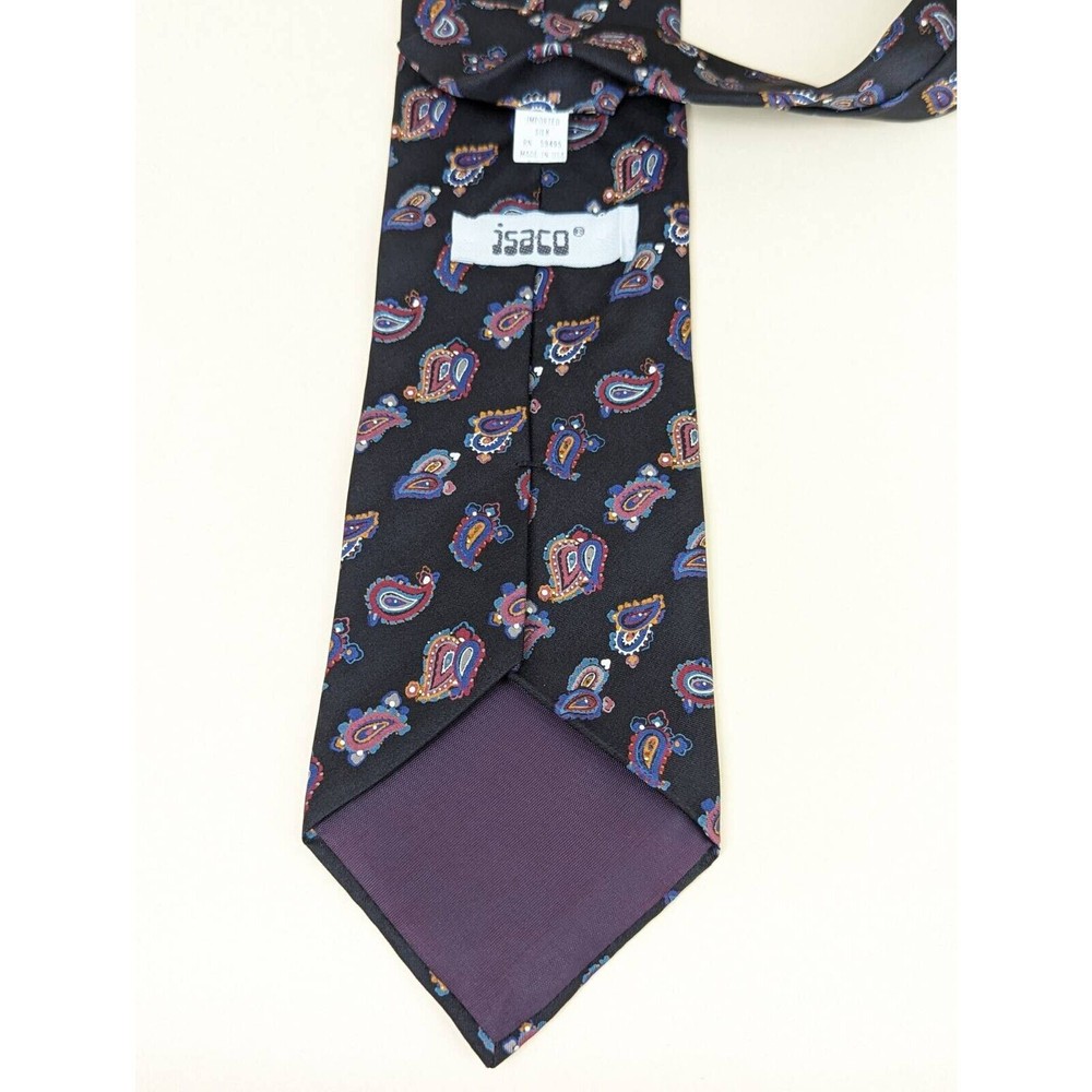 Vintage Mens Isaco Tie Necktie Red Blue Paisley 100% Silk Tied Classic USA 58 Vintage 1980s Isaco International Paisley 100% Imported Italian silk tie. Handsewn in the USA. Very Good Vintage Condition. Please see photos. Sold as Pictured. Measurements: Length 58". Width 4". Brand: Isaco Style: Tie Necktie Color: Red Secondary Color: Blue Material: 100% Silk Attachment: Tied Length: 58 In Sold as pictured. Thanks for looking! We are happy to bundle or combine items to save on shipping. Please feel free to reach out to us!