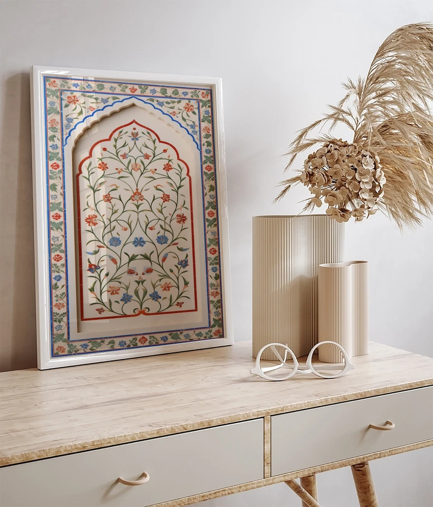 Vintage Islamic Inlay Work Wall Art Floral Prints Living Room Decor Printable Indian Vintage Poster Wall Art Boho Wall Art Material: Premium luster photo paper Print type: Inkjet printing One side printed + The finish provides the highest possible resolution and color saturation + Lasts up to 200 years in color and 400 years in black-and-white + Printed on high-quality resin-coated photo base paper medium + Posters can be hung with double-sided tape, tacks, or framed + Hand washing with a gentle cry cloth is recommended for extended durability I will hand select the best choice of paper for your chosen design to ensure top quality results for a beautiful, bright and luxurious print. All prints are sealed in cellophane slips for protection during transportation, and are shipped in a protective cardboard envelope.