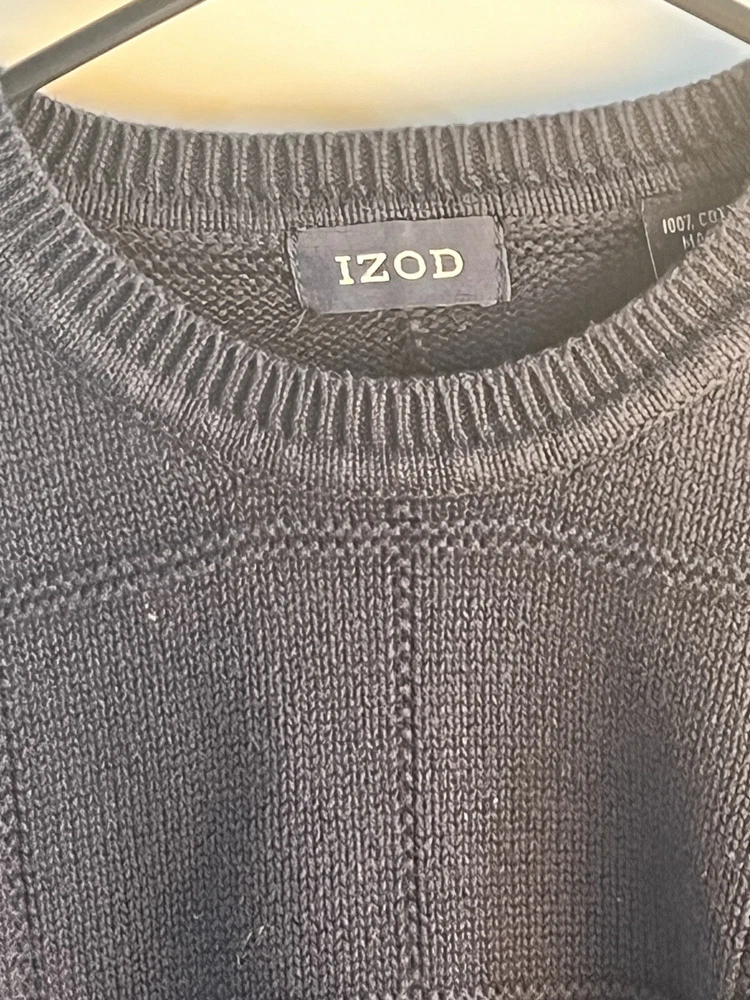 This vintage Izod cable-knit sweater is a must-have for any fashion-conscious man. The navy blue color and XL size make it a versatile addition to any wardrobe. The sweater's cotton material is both comfortable and durable, ensuring that it will last for years to come. With its classic pullover style and cable-knit design, this sweater is perfect for any occasion. Whether you're dressing up for a night out or keeping it casual, this sweater will provide you with a stylish and comfortable look. Don't miss out on the chance to add this vintage Izod cable-knit sweater to your wardrobe today.