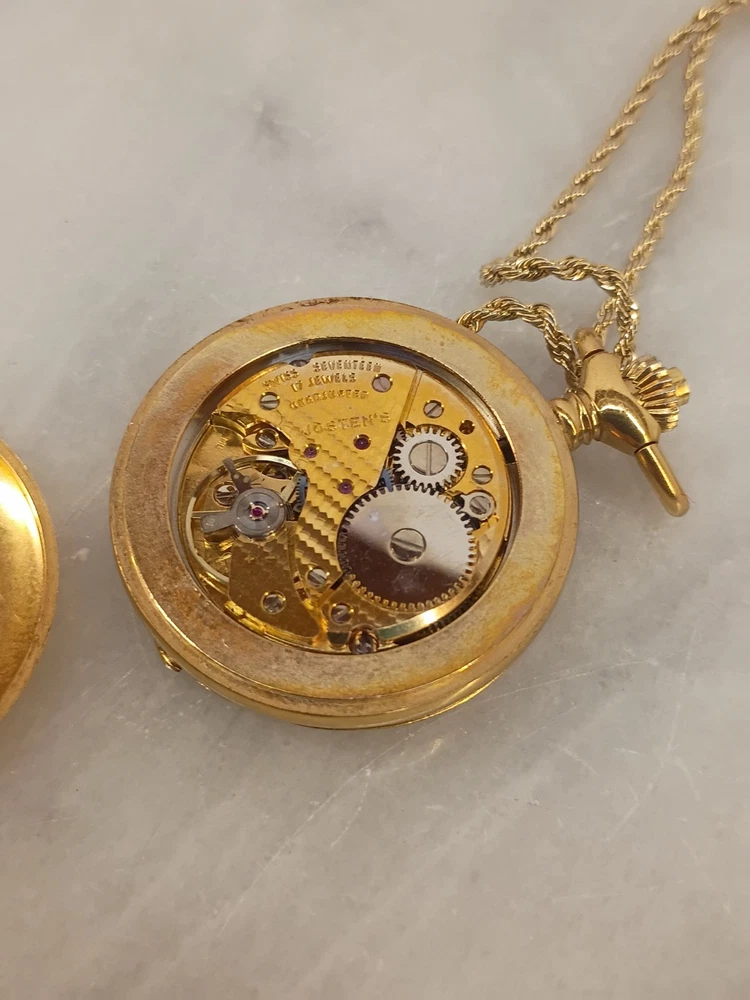 The Vintage JOSTENS 17 Jewel Gold tone Pocket Watch Pendant is a rare and unique timepiece that functions as a functional piece of jewelry. This pocket watch, with a mechanical (manual) movement and 17 jewels, features a hinged lid and a gold tone chain for easy carry. The gold dial and case color add a touch of elegance, making it a desirable accessory for both men and women. With its distinctive design and brand, this pocket watch from the 1980s is sure to be a standout addition to any watch collection. Thank you for visiting my listing today and thank you for your interest in this item! My goal is to have a pleasant transaction resulting in a satisfied customer. I hope any transaction between us leaves you with a feeling of confidence knowing you can trust me and the items I offer here. *Most if not all my listings are set to accept offers. Feel free to send an offer and I will be happy to consider it!! *Please contact me with any questions or concerns and I will be happy to help. *Always examine the photos carefully, and if in doubt, email me with any questions you may have. *Please note that condition statements are offered as a guide only. They will always be somewhat subjective and reflect our opinion, which may not necessarily agree with someone else's opinion. PLEASE READ: I aim to please and I want my buyers to have a positive transaction with me. If you have questions, concerns, or special requests related to any of my items I hope you will contact me so we can work them out to your satisfaction. I sell my items to give you a great item at a decent price while making a little profit at the same time. If you feel the item you are interested in is too pricey do not hesitate to send me a fair offer and I will consider it. My goal is to satisfy your needs and mine so both parties can benefit. SHIPPING: If you prefer a different shipping method or company please contact me and I will do all I can to make that happen. If you have concerns or requests about the packaging of your item contact me and I will do all I can to accommodate them. Shipping costs are based on location in each state or country, the costs always differ. After I have received your payment I will ship your item out within 3 business days or less excluding weekends and holidays. BEFORE PURCHASING & BIDDING: **Please see all the pictures. I do not have great photography skills but I try to get the most accurate photos I can. If you are unsure about something you see in a photo contact me so I can do what I am able to answer your concern about the item. **I cannot stress enough that if you have any questions or concerns please contact me before purchasing and bidding. Communication can solve so much. **As a customer myself, I understand the meaning of customer satisfaction and my goal is to have nothing but satisfied customers. If you are not unsatisfied with your purchase I ask that you please contact me so I can take care of your issue. My goal is for you to be 100% satisfied. INTERNATIONAL BUYERS WELCOMED - PLEASE NOTE: I welcome International buyers! Please be aware that any custom/duties/taxes that the parcel might incur once it is out of the USA are the responsibility of the buyer. Please check with your country's customs office to determine what these additional costs will be prior to bidding or buying. Please refer to the eBay Site Map for more information if needed.