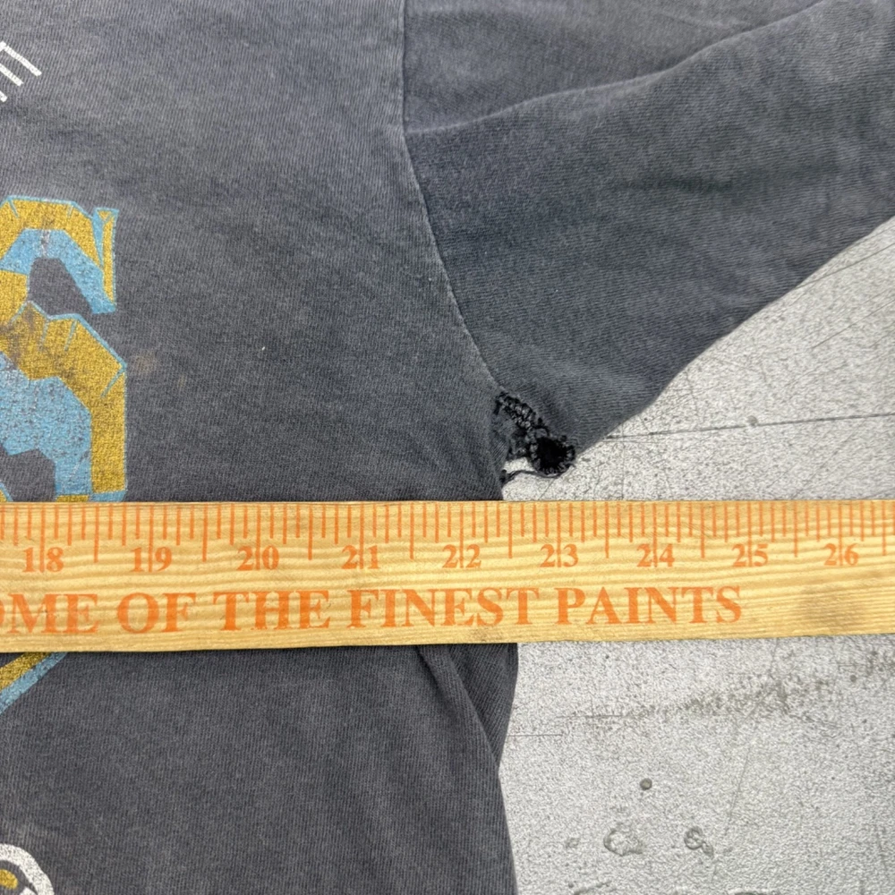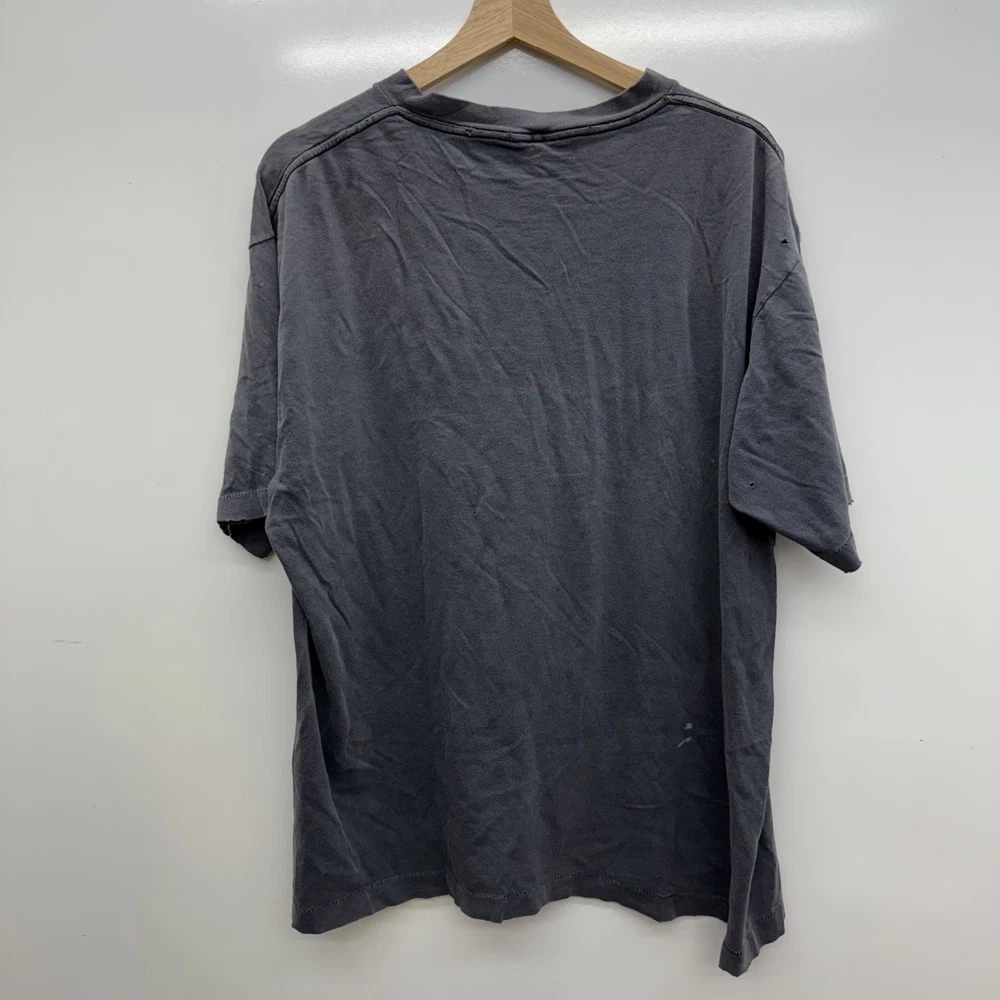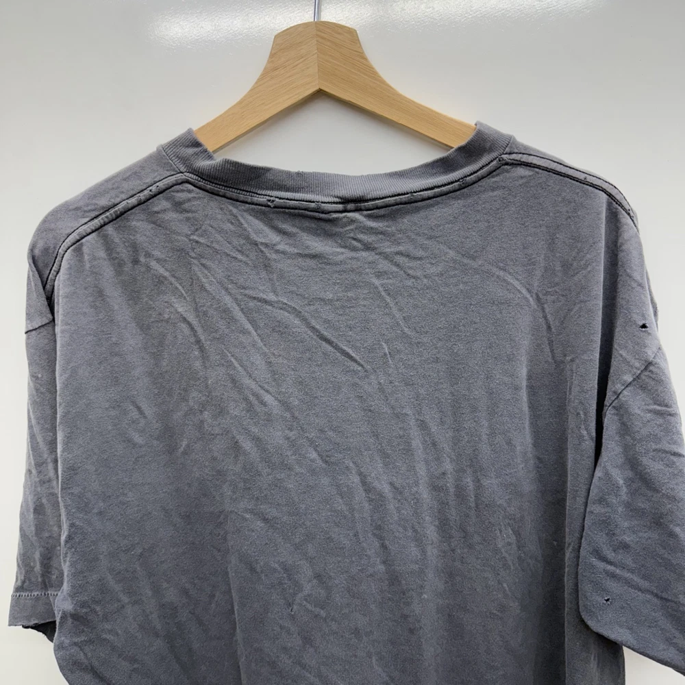 A lot of Holes Shown All Around This T Shirt! Beautiful Fade And Distressing 90s Single Stitch Banned logo Nutmeg Measurements: in photos