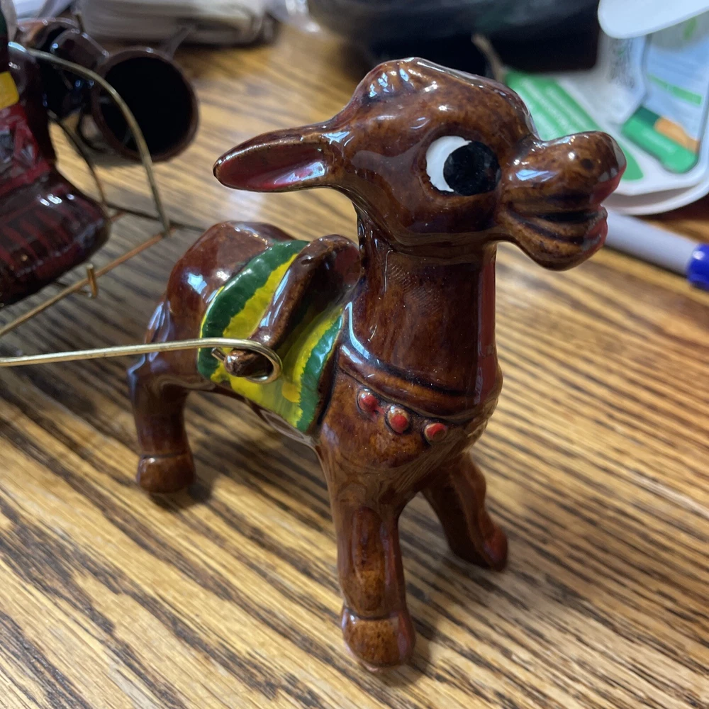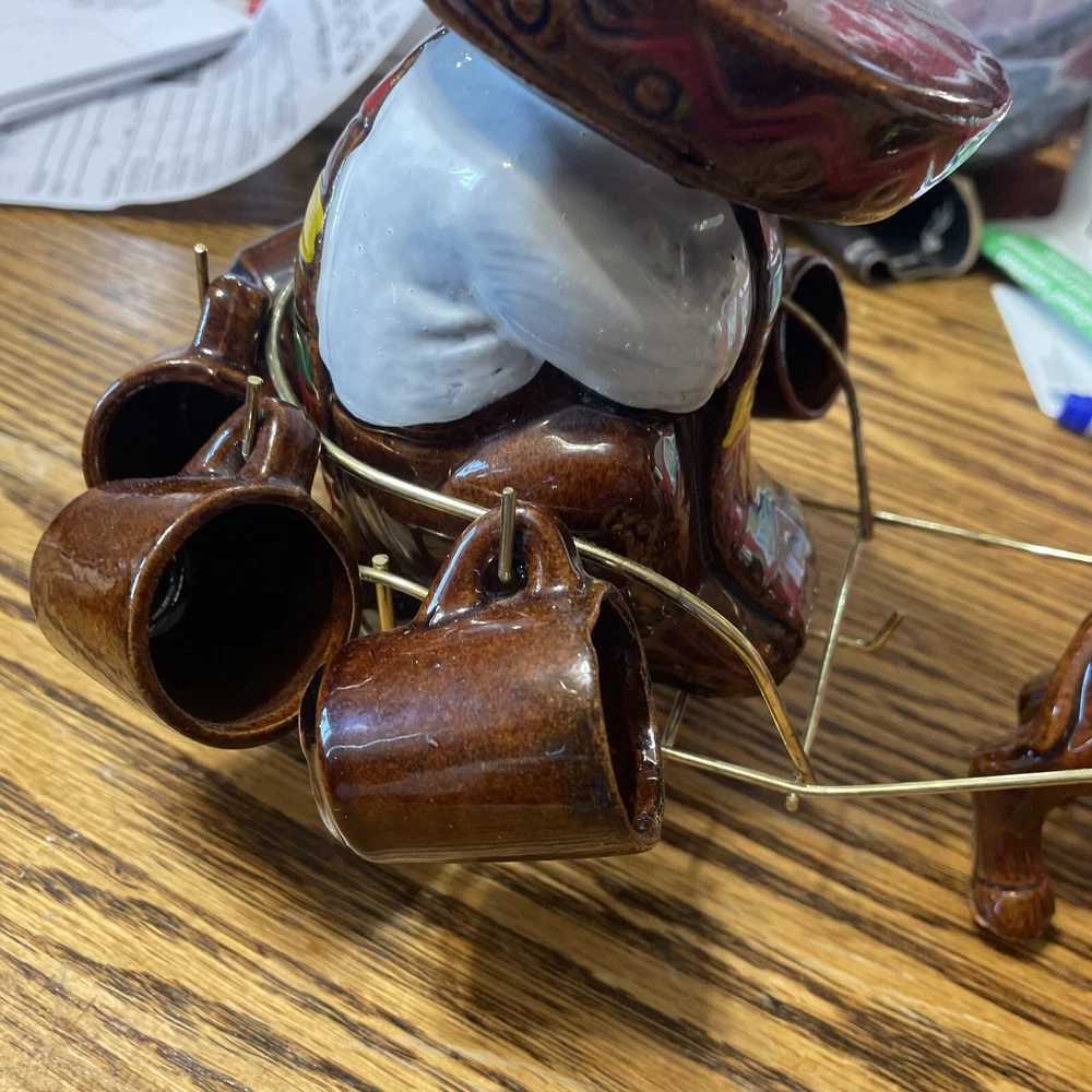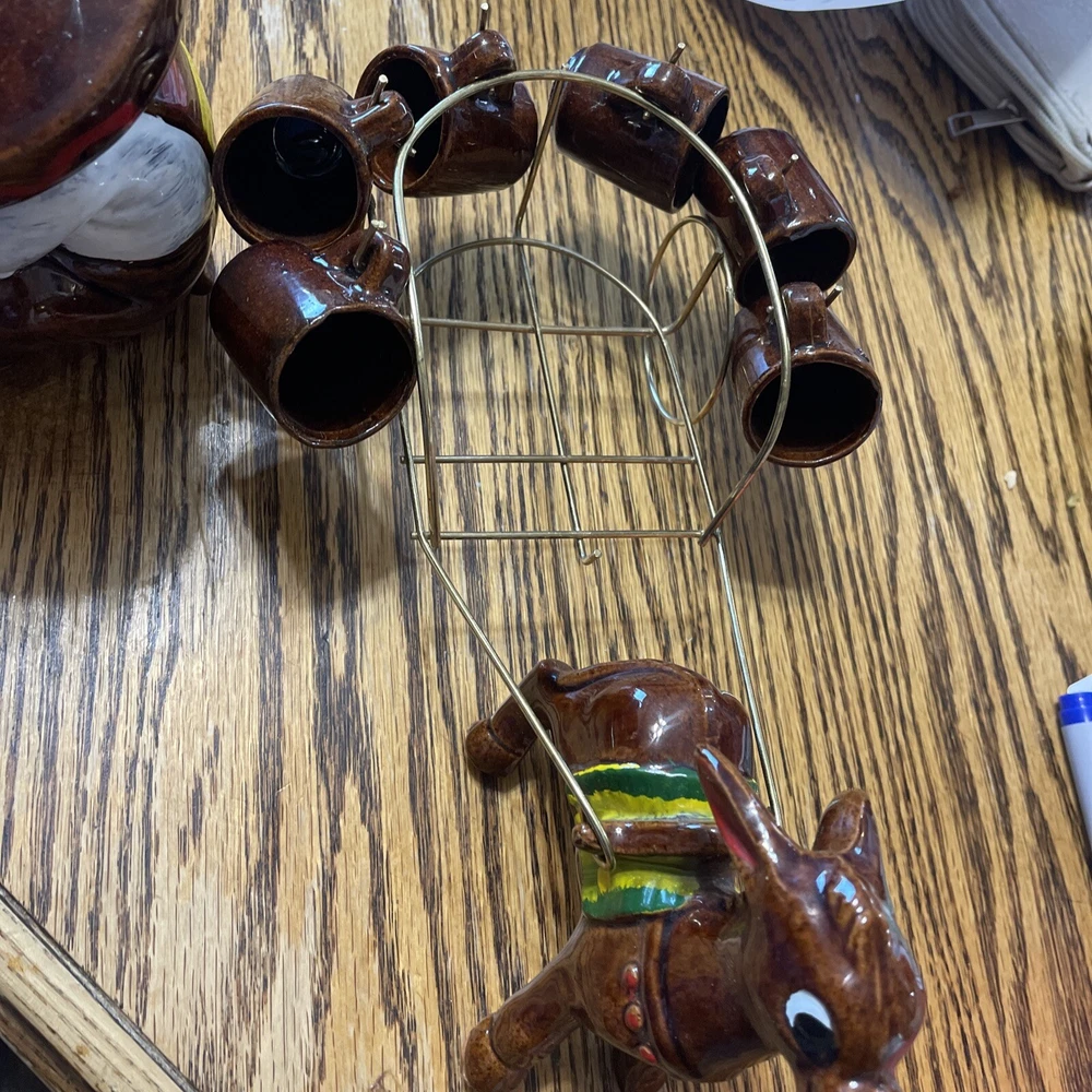 Vintage Japanese Ceramic Donkey Cart/Bandido Sombrero Tequila Decanter +6 cups. Condition is Used. Shipped with USPS Ground Advantage.