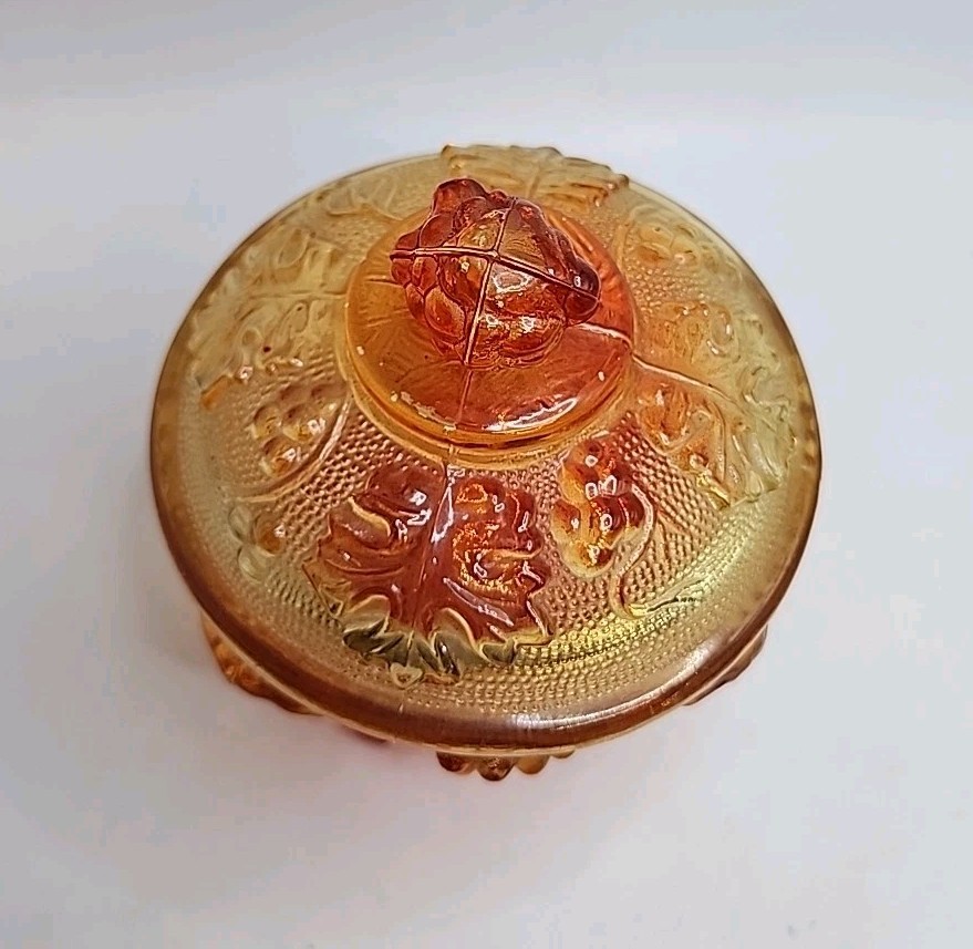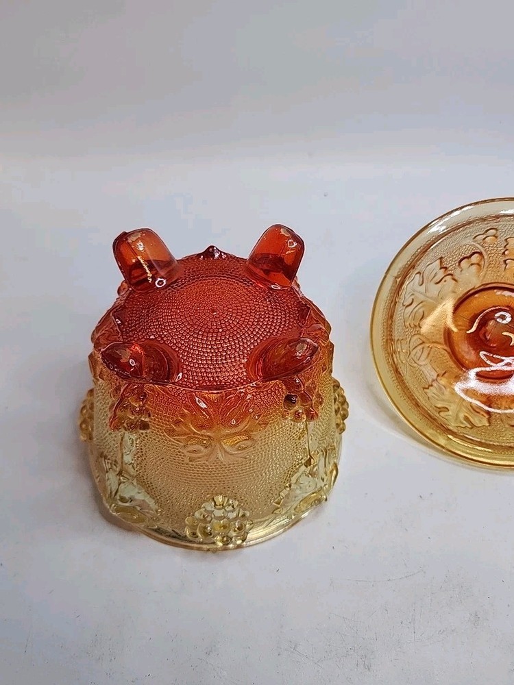 Vintage Jeanette 1960s Amberina Grapes & Vine Footed Candy/Trinket Dish with Lid