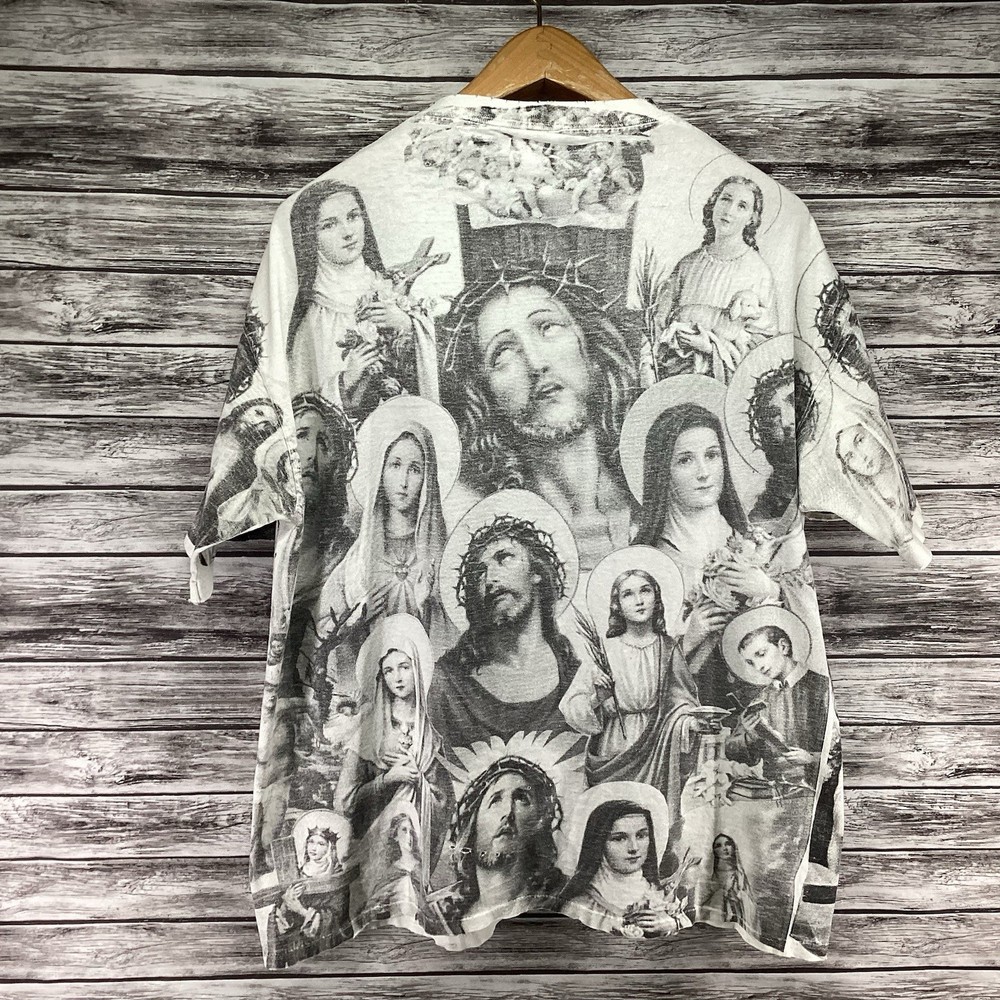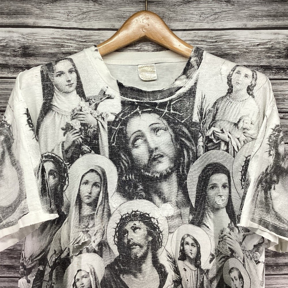 Vintage Jesus Shirt Mens XL White Archaic Smile All Over Print USA 90s RARE Brand: Archaic Smile Size: Mens XL (Chest "23.5 / Length "27) Condition: Pre-Owned / Fair Used condition with minor signs of ware, please see photos for any specific defects or details worth noting. If item is used the item will be washed and inspected before listed. Items are stored in a smoke and pet free environment. We offer combined shipping discounts on multiple item orders. Any questions feel free to DM me thanks!!!