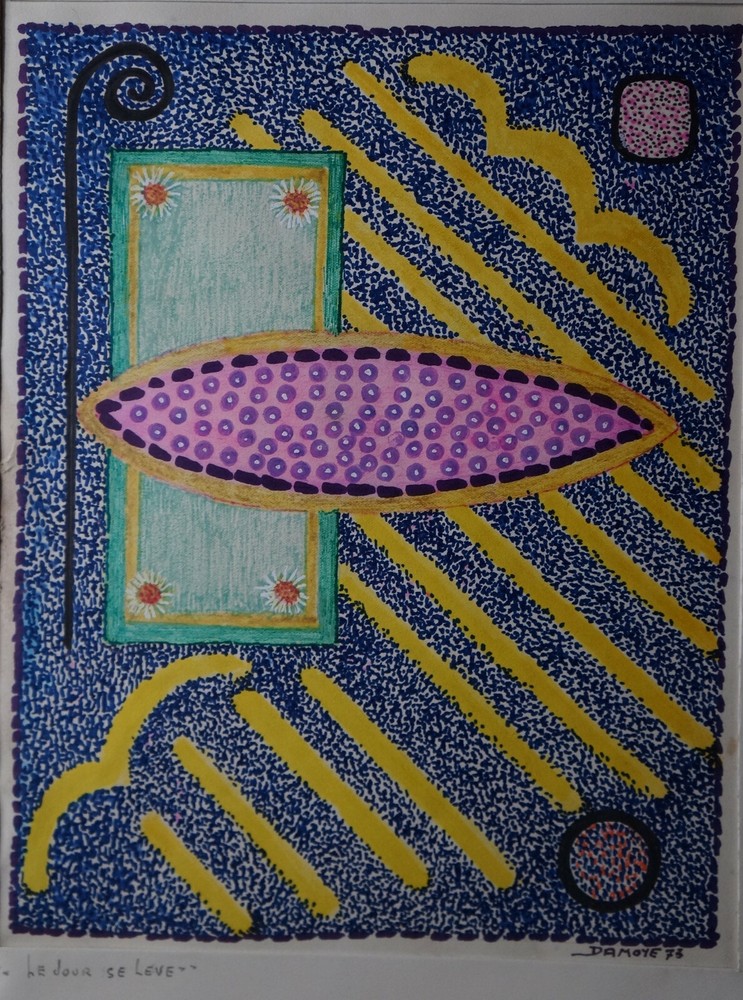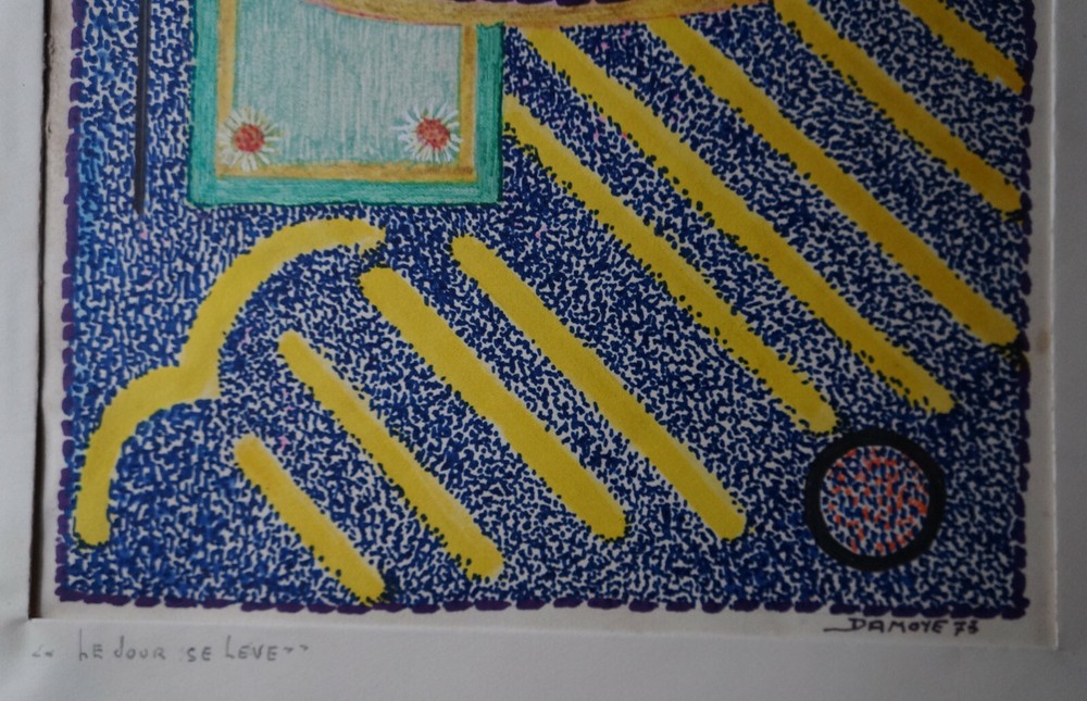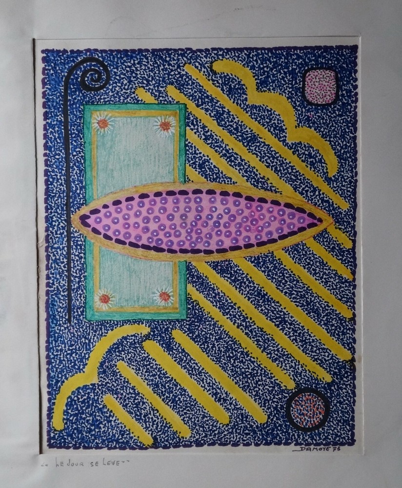Drawing Felt Art Brut The Day Rises Signed JULIEN DAMOYE (1892-1977) The description of this item has been automatically translated. If you have any questions, please feel free to contact us. Julien Damoye (1892/1977) - French photographer and painter. Original drawing, felt and pastel on drawing paper, glued to black sheet. "Pointillist composition - The day rises" - Signed and titled at the bottom - Dated 73 Total dimensions 38 x 31.5 cm - Good general condition - Protected sending, secure packaging Professional photographer and painter of Vendôme, working Faubourg Chartrain, referenced to Benezit and having exhibited at the Salon des Artistes Français de 1938 Julien Damoye (1892/1977) - French photographer and painter. Original drawing, felt and pastel on drawing paper, glued to black sheet. "Pointillist composition - The day rises" - Signed and titled at the bottom - Dated 73 Total dimensions 38 x 31.5 cm - Good general condition - Protected sending, secure packaging Professional photographer and painter of Vendôme, working Faubourg Chartrain, referenced to Benezit and having exhibited at the Salon des Artistes Français de 1938 Recommended products Provided by Drawing Gouache Brut Art TRAVEL TO ROME Signed JULIEN DAMOYE (1892-1977) View item Pastel Drawing Composition by Julien Damoye (1892-1977) View item Ink Drawing Composition Brut Art Signed GUSTAV VON DER LOO View item Drawing Black Felt Cubist Composition Signed ... To Identify View item Drawing Abstract Composition 1977 Signed DOMINIQUE GAUTIER (1951/2018) View item Ink Drawing ABSTRACT COMPOSITION 1977 Signed DOMINIQUE GAUTIER 1951/2018 View item Ink Drawing by Dominique Gautier 1951/2018 Abstract Composition 1977 - Signed View item Ink Drawing The Tree Signed Pierre Zenobel (1905/1996) View item Authenticité Original Type Dessin Matériau Feutre Style 1970 Genre Art brut, Outsider Art Caractéristiques Signé Thème Abstrait