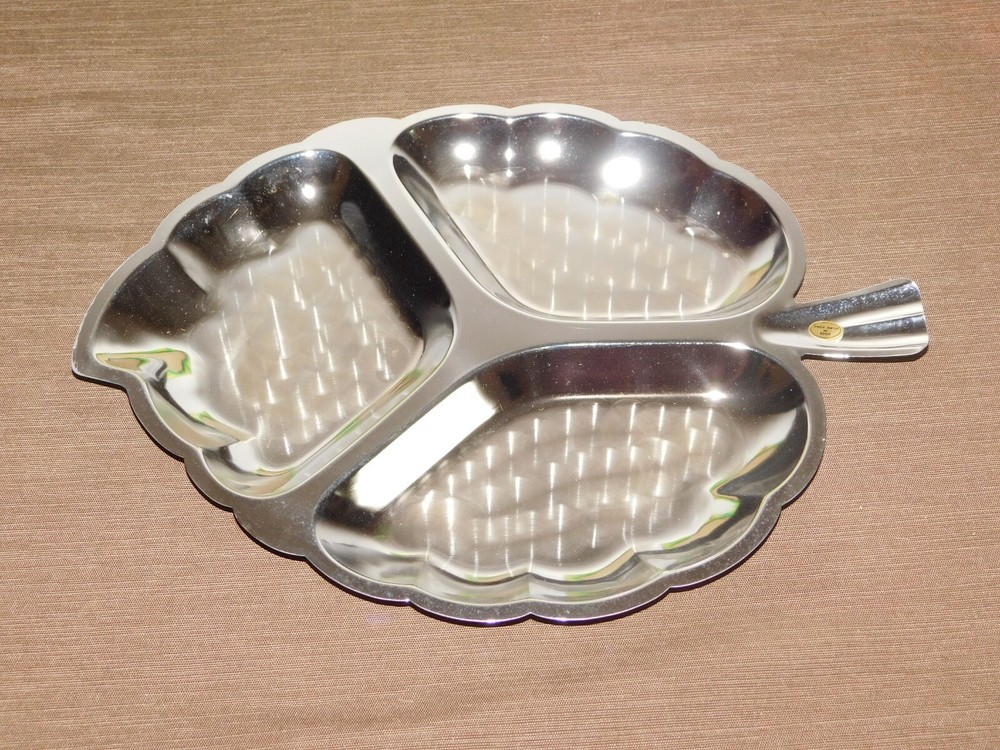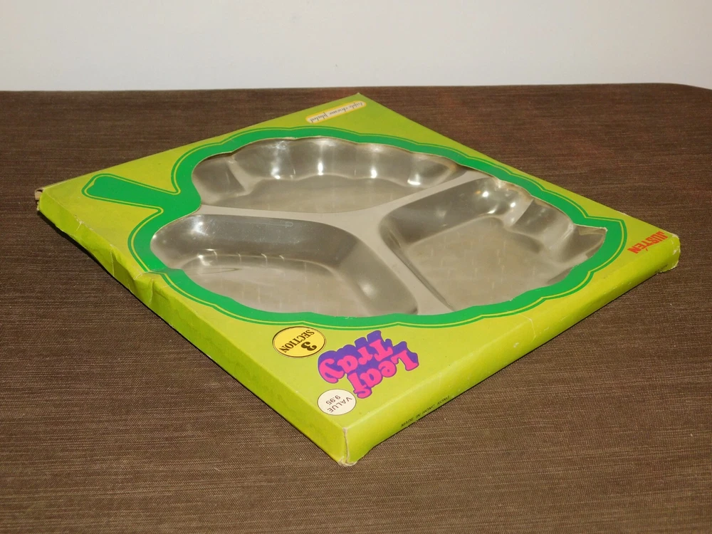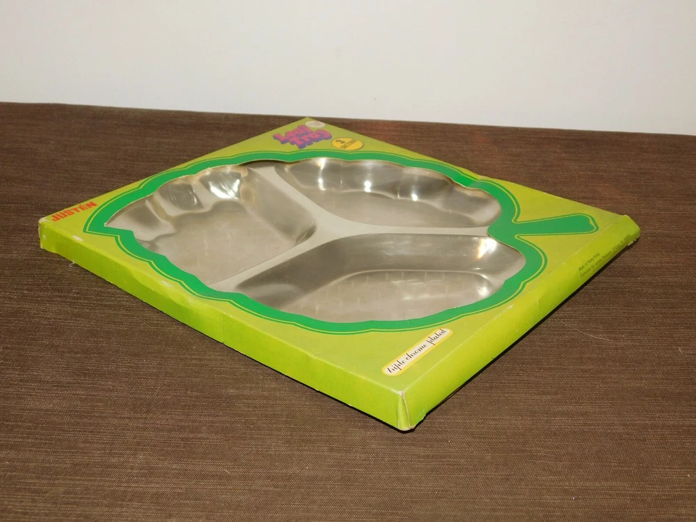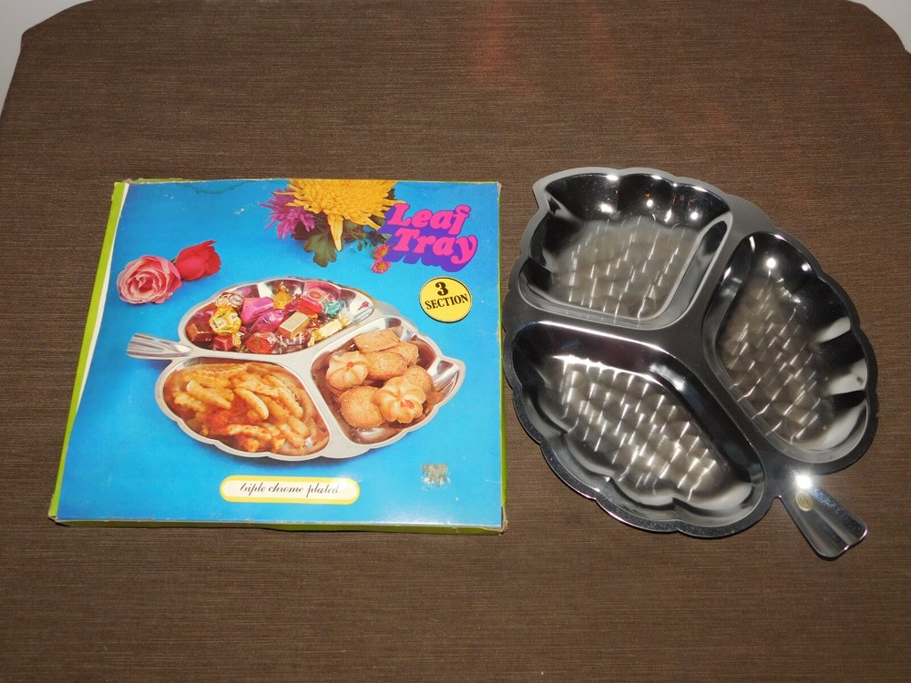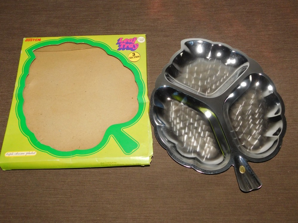 YOU ARE BIDDING ON..... VINTAGE KITCHEN 13 1/2" LONG JUSTEN TRIPLE CHROME PLATED 3 SECTION LEAF TRAY NEW in BOX .. . ..BOX SHOWS HANDLING/AGE WEAR..HAS SMALL TEARS/CREASE LINES/STAINS...PLEASE VIEW PHOTOS FOR CONDITION.***PLEASE E-MAIL IF YOU HAVE A QUESTION OR WANT AN ADDITIONAL PICTURE....PLEASE VISIT MY EBAY STORE FOR ADDITIONAL VINTAGE ITEMS..THANK YOU***12U-BX5421-XXXX