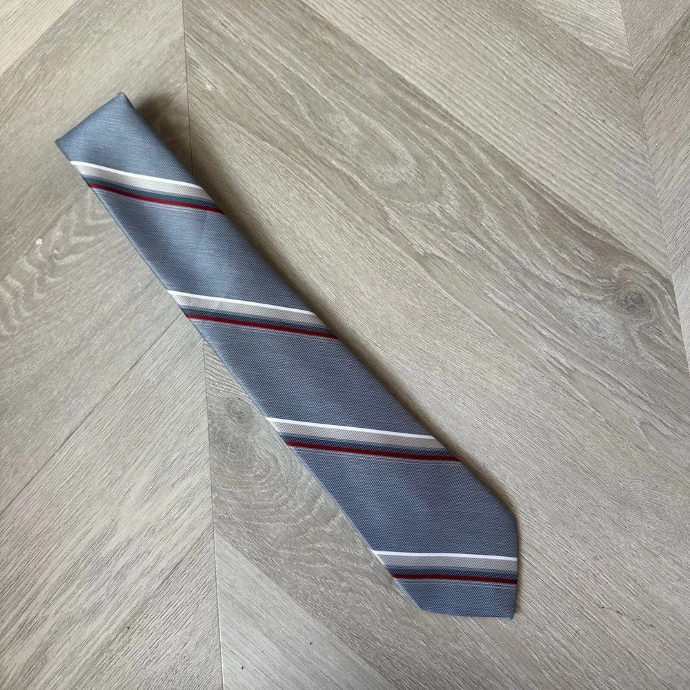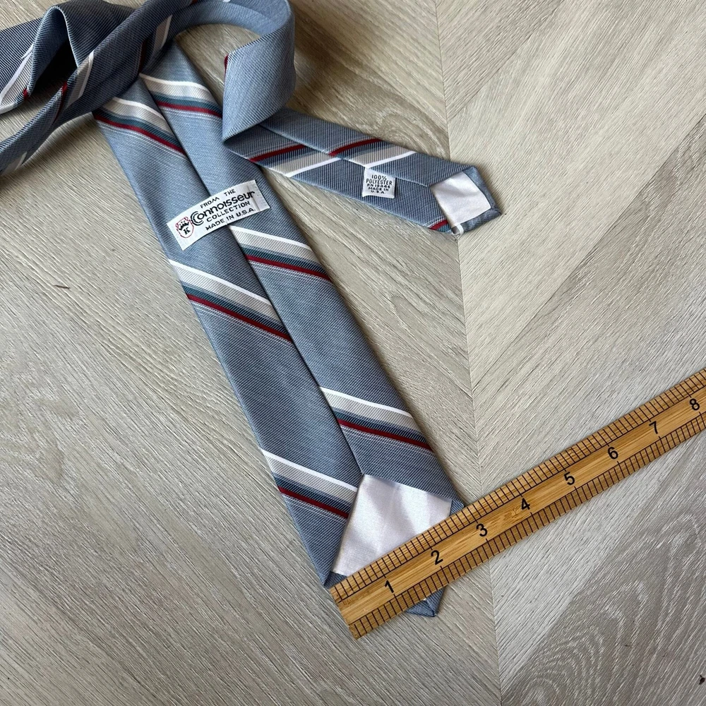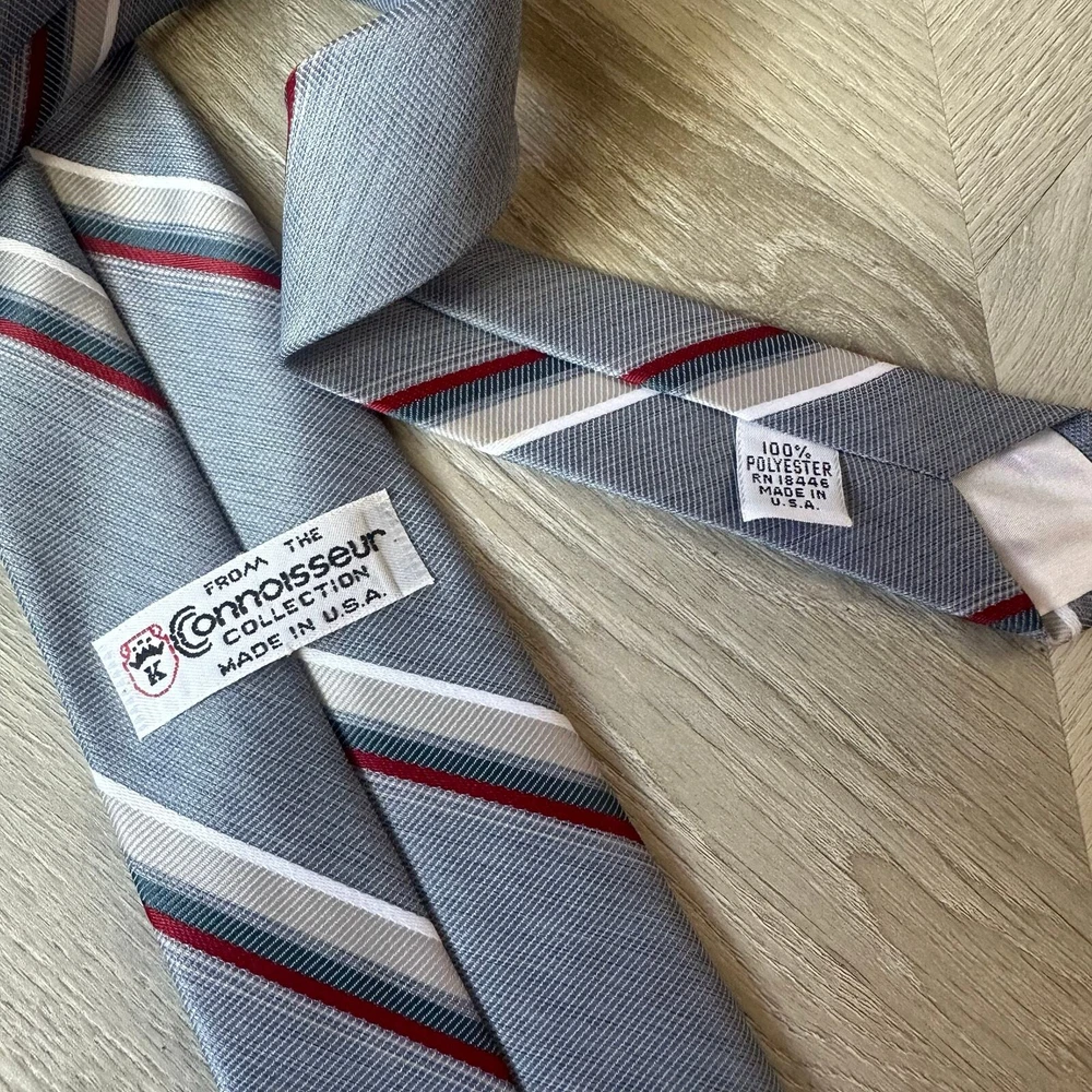 Vintage K Connoisseur Collection Tie 80s 70s Gray Blue Red Diagonal Stripe Excellent condition no flaws or signs of wear. Main color is a blue/gray almost silver. ~54" long