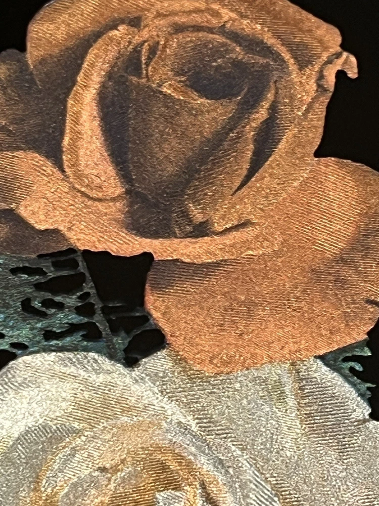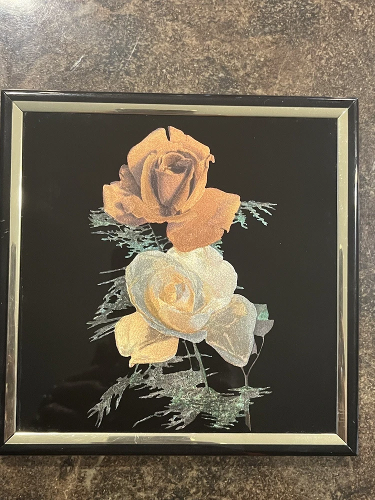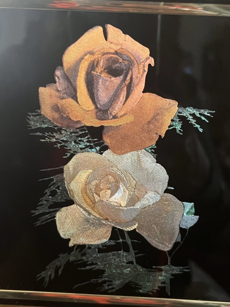 HomeVintage Kafka Screened HAND ETCHED Glass 6" Picture ROSES numbered USA