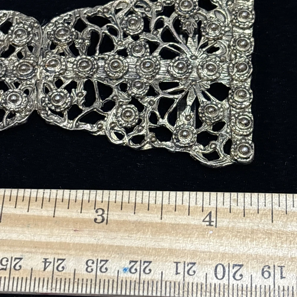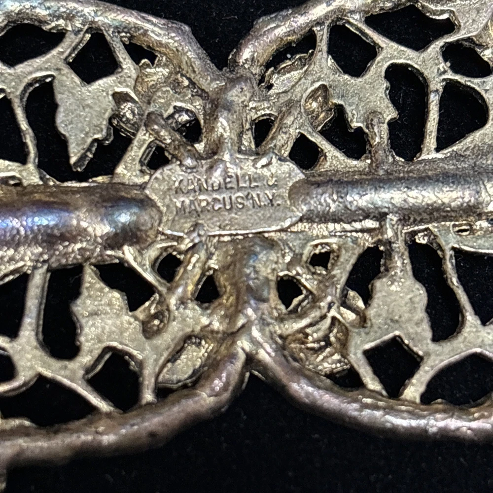 This vintage Kandell Marcus NY belt buckle is a stunning addition to any wardrobe. Measuring 4.25 inches in diameter, it is a comfortable fit for any belt. The copper tone material gives it a unique and timeless look that is sure to turn heads. The brand is known for its high-quality clothing and this belt buckle is no exception. The Kendall Marcus NY label is synonymous with style and sophistication. This item is perfect for anyone looking to add some vintage flair to their outfit.