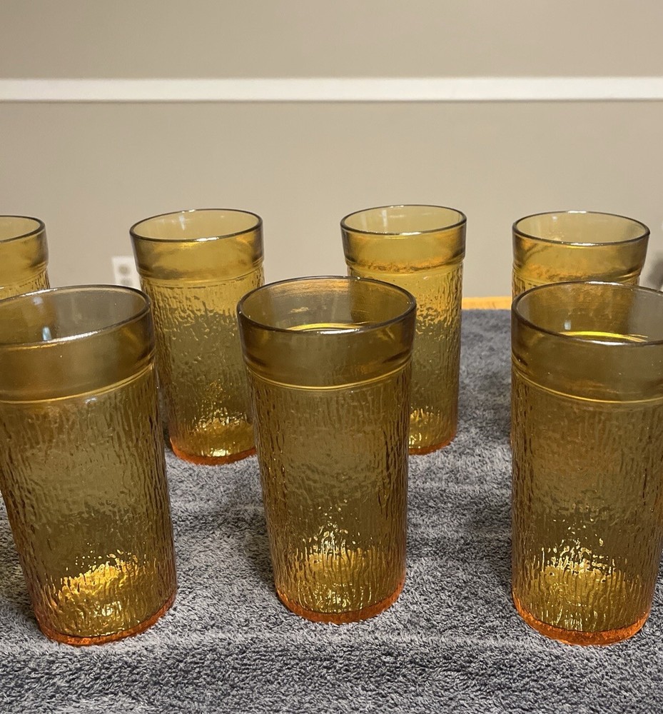 Set Of 9 Vintage Kerr 6 Inch Tree Bark Textured Glassware