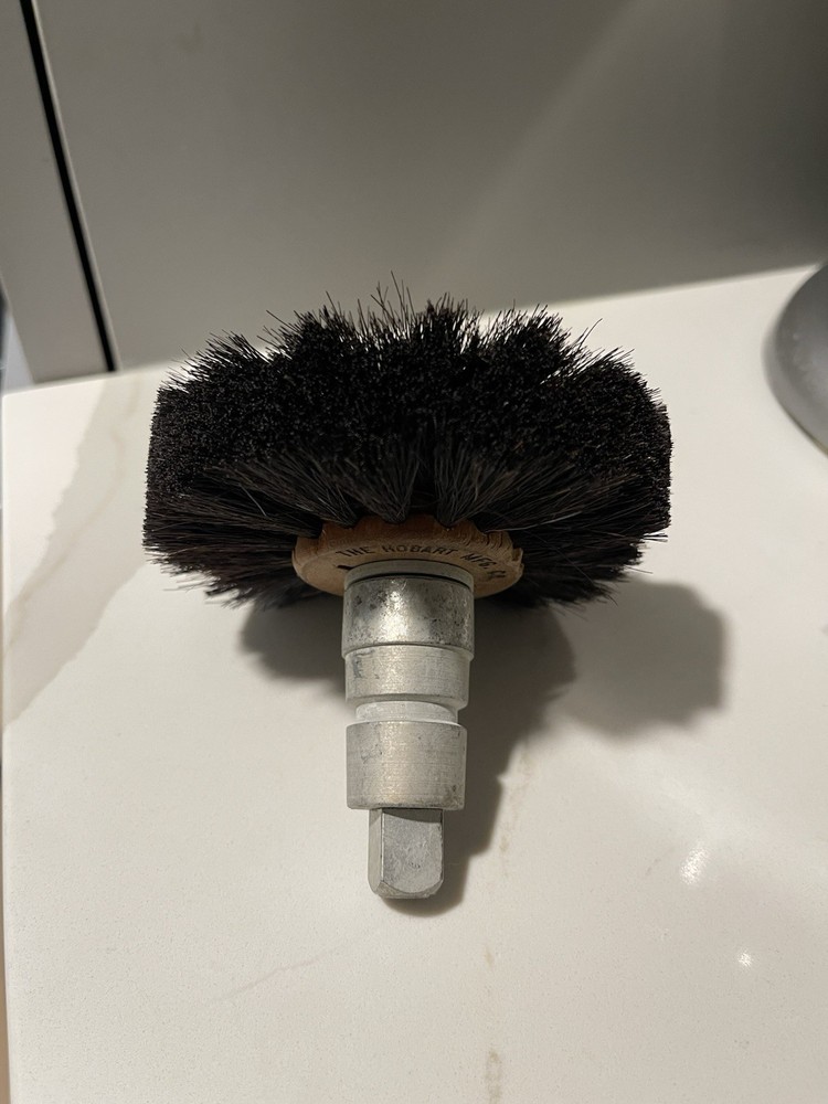 Selling my KitchenAid Hobart Silver Buffer "BU" Attachment in great condition (no box - vintage) - Buffer wheel was rarely used and works on both new and old KitchenAid stand mixers. This "BU" buffer attachment was made for Hobart Corp. for its KitchenAid division in the 1950s. Does not includes original box or documentation. Mixer shown in pictures is not part of this listing. You are buying a genuine vintage KitchenAid BU buffer attachment only Ask questions prior to purchase as there are no returns.