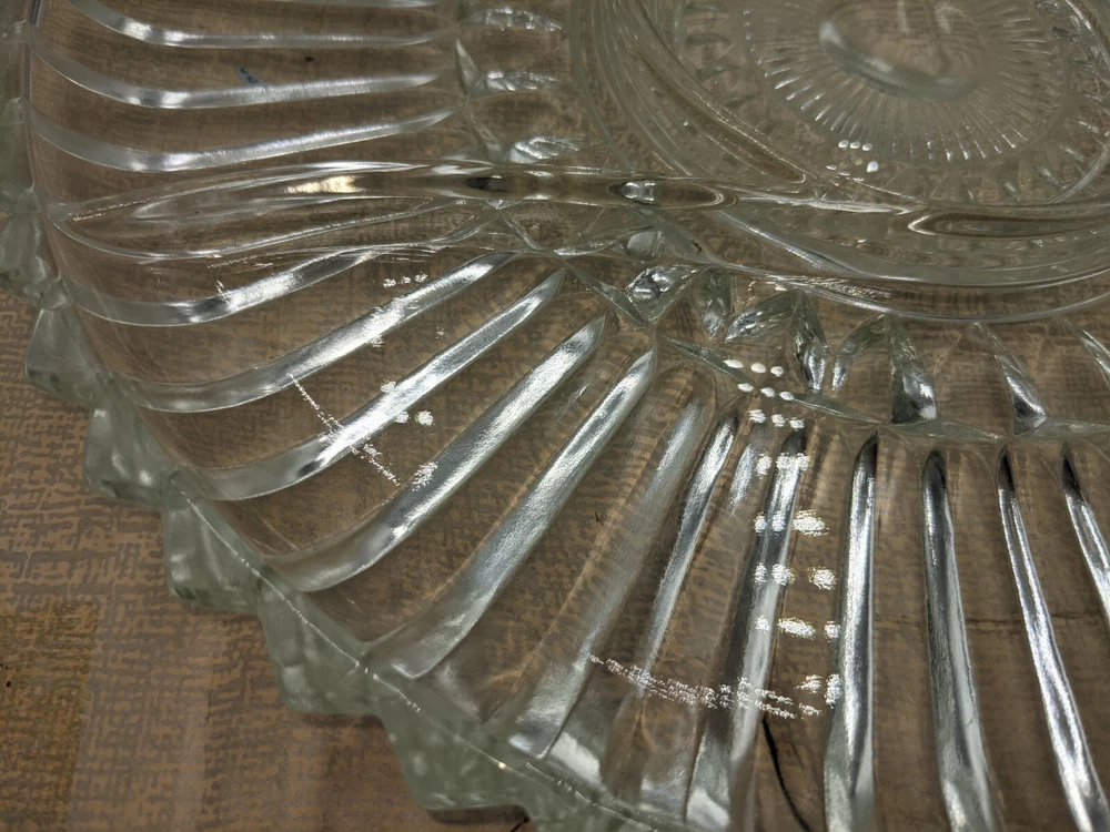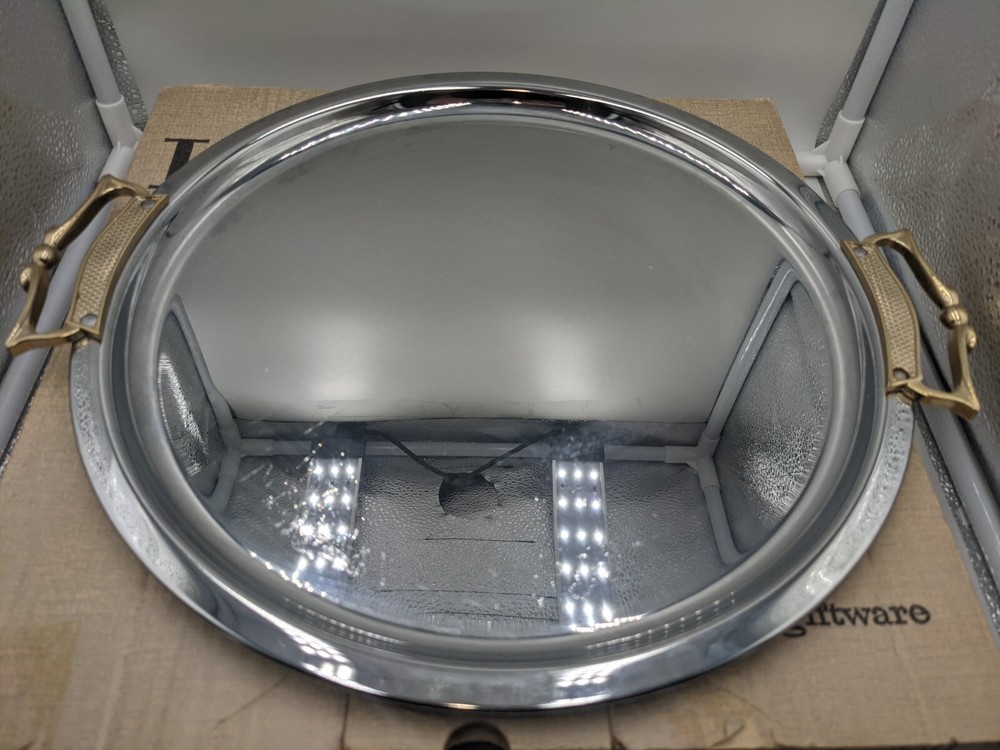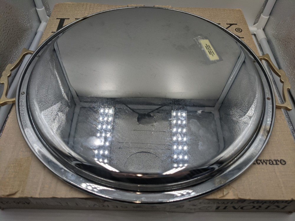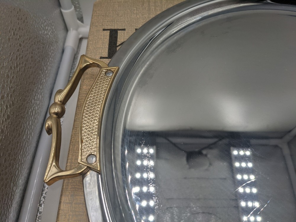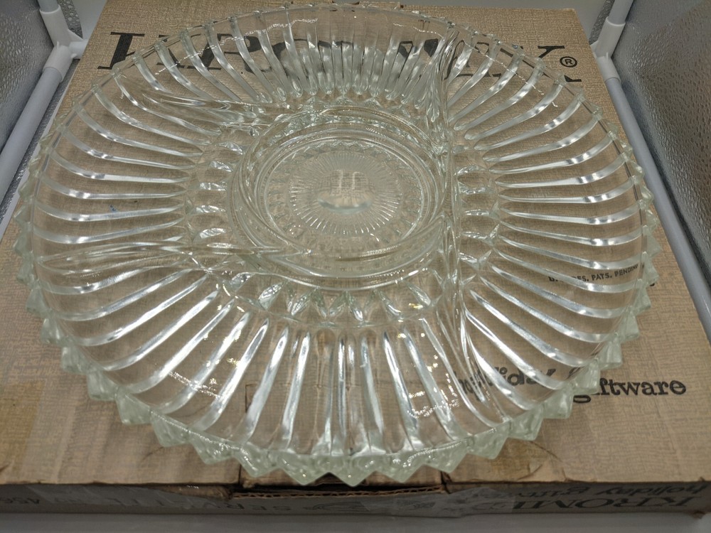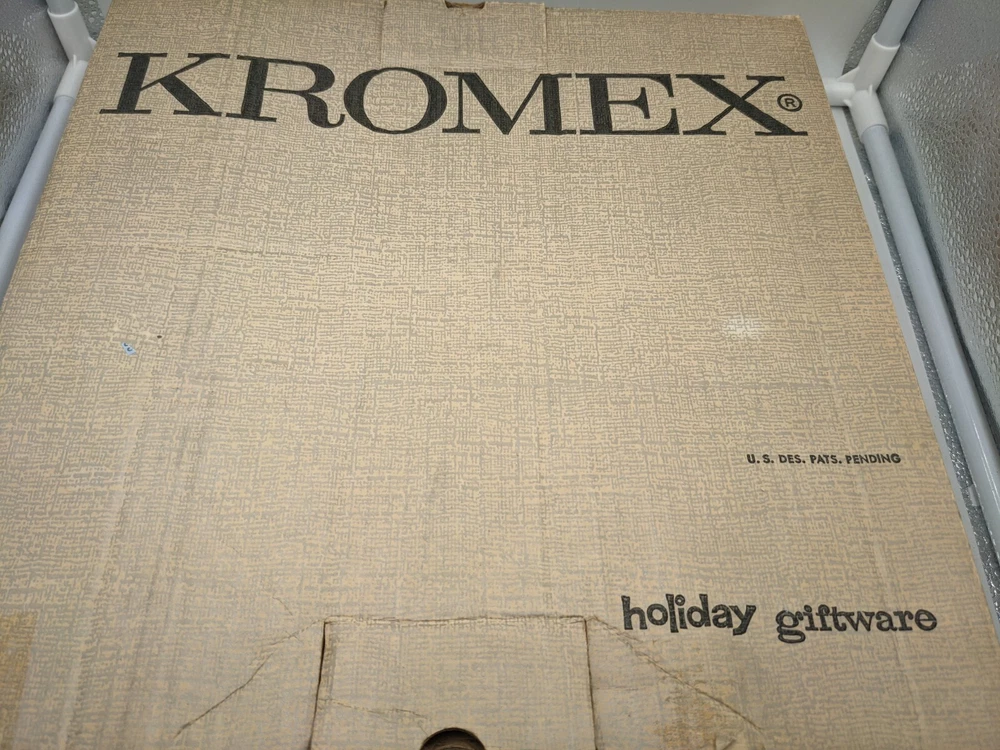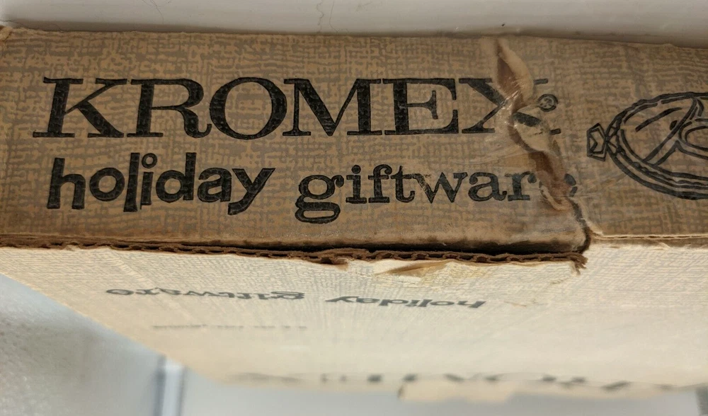 VTG Kromex Holiday Giftware Chrome & Glass Divided Serving Relish Platter Boxed. Very nice vintage condition with minimal scratches from normal use. No chips or cracks in the divided glass dish. The divided glass tray fits on top of the chrome-plated tray which has brass handles. It is in the original box which does show signs of wear - there is some tape - but it holds the platter perfectly fine. All of my items are carefully packed for shipping, no matter their value - $5 items are wrapped with the same care as a $200 item. My goal is to have your purchase arrive safely. Large, heavy and fragile items are harder to use combined shipping with but just ask if you would like to purchase more than one item and I am more than happy to do so if feasible. Measurements are approximate or as close as I can get. Also, the color you see many not be the exact color depending on your computer or phone settings. Unpaid items will result in the buyer being blocked from further purchases. Please remit payment right away so we can get your item shipped out quickly.