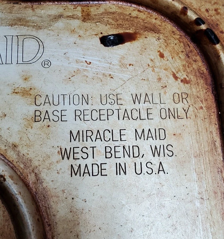 Type:Electric SkilletCountry of Origin:United StatesPower:1400Color:SilverFeatures:Temperature Controlgtin13:Does not applyModel:Miracle Maid West BendMaterial:AluminumUPC:Does not applyBrand:West BendPower Source:Electric