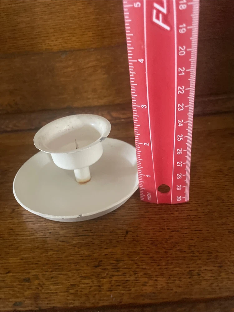 This vintage LENOX Candle Holder features a French Country style, with a solid round design in white metal. It is suitable for all occasions and both teens and adults can appreciate its elegant design. The candle holder includes a finger loop for easy carrying and has a 1.5" diameter, perfect for chamber drip candles. Care for this piece is easy, making it a convenient and stylish addition to any decor. As is as shown -usage. Ask any needed questions:)