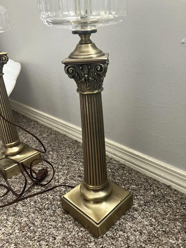 2 LAMPS Illuminate your space with a touch of elegance using this vintage table lamp. With its classic Victorian style, the lamp features a beautifully crafted brass body, complemented by a rich gold finish that adds a warm, inviting ambiance to any room. The unisex design makes it a versatile addition to any decor. The lamp is equipped with a convenient switch control and is powered by corded electric, ensuring easy operation and a reliable source of clear, bright light. The brown cord blends seamlessly with the lamp's vintage aesthetic, making it a perfect choice for those who appreciate the charm of original period pieces.