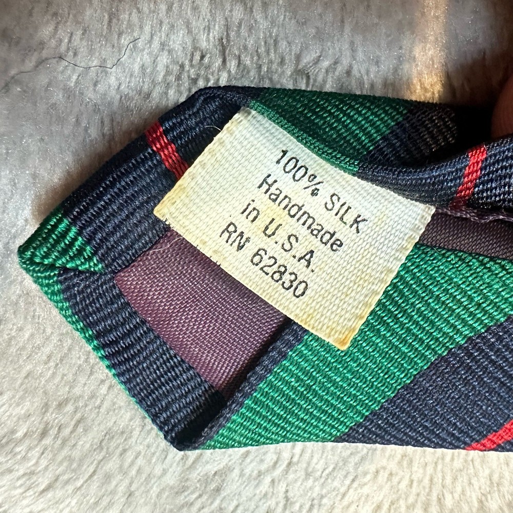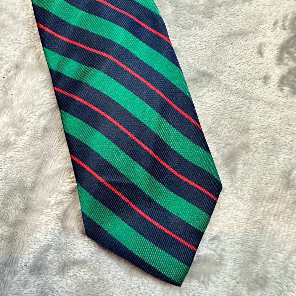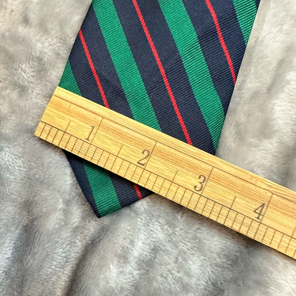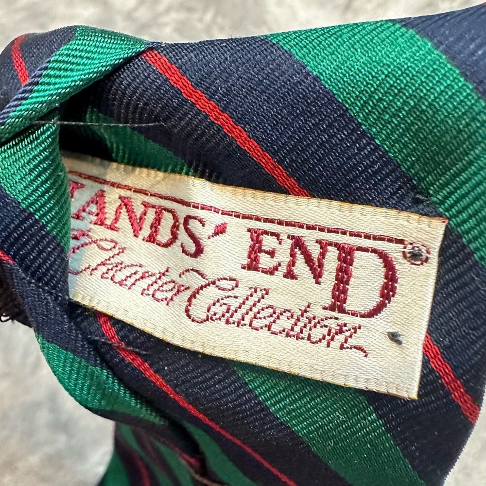 Vintage Lands' End Silk Tie Charter Collection Diagonal Stripe Green Navy Blue Red Preppy Great condition, no flaws. Length ~56"