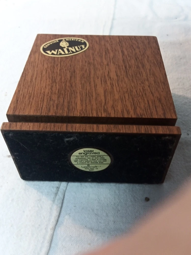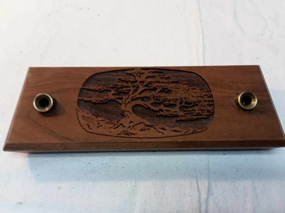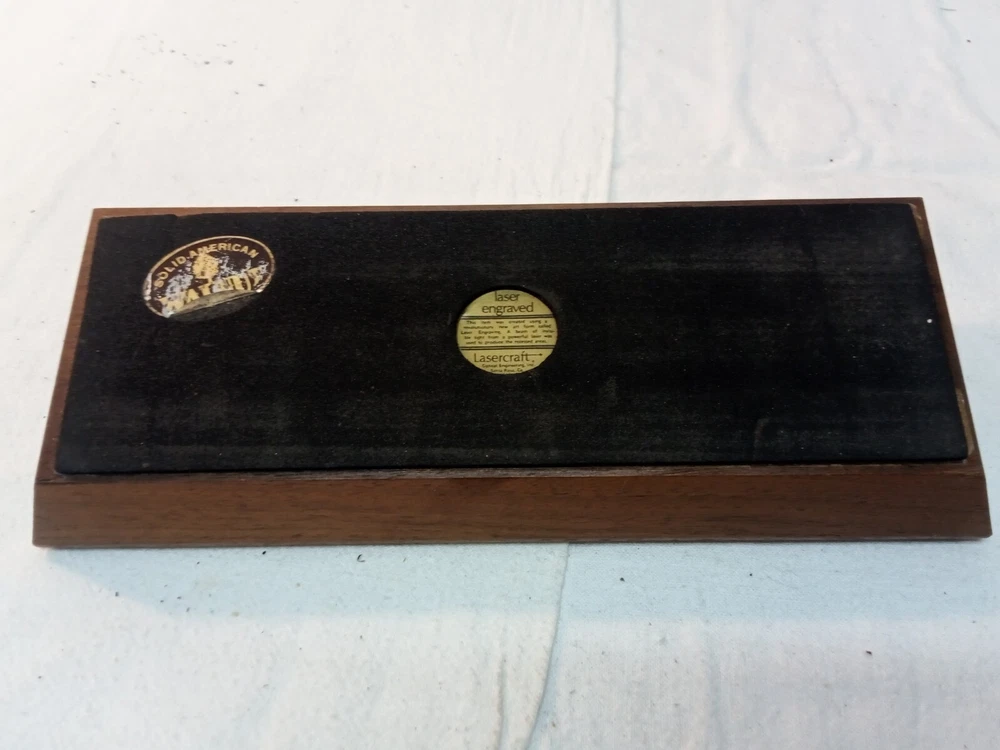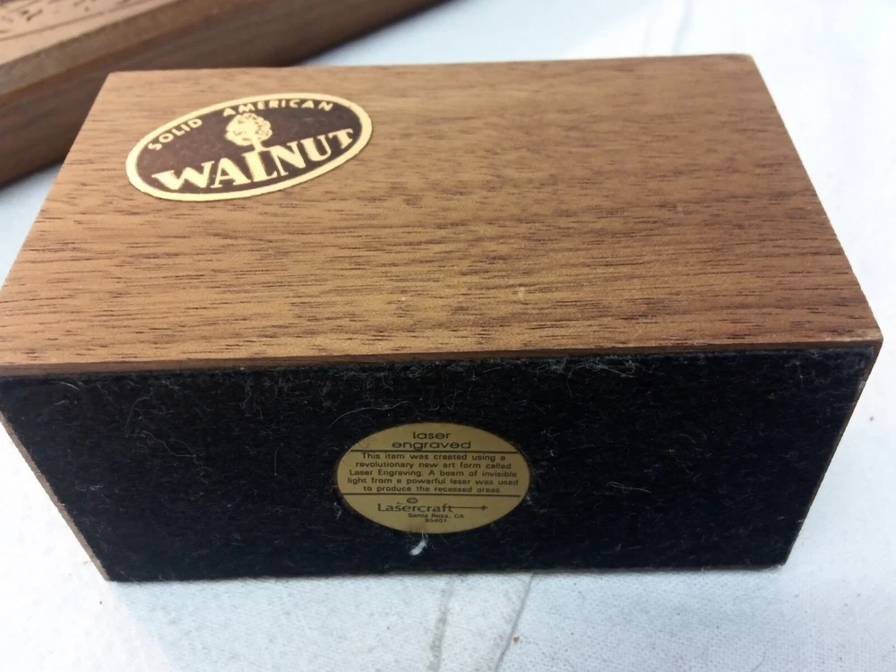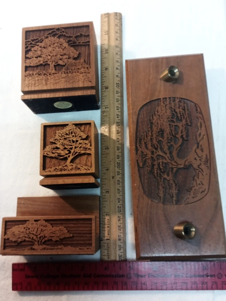 Vintage Lasercraft American Walnut Wood Laser Engraved 4 Piece Desk Set Trees