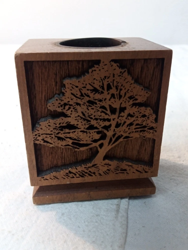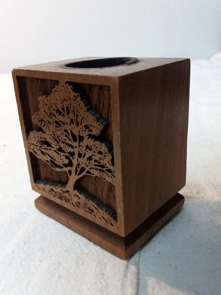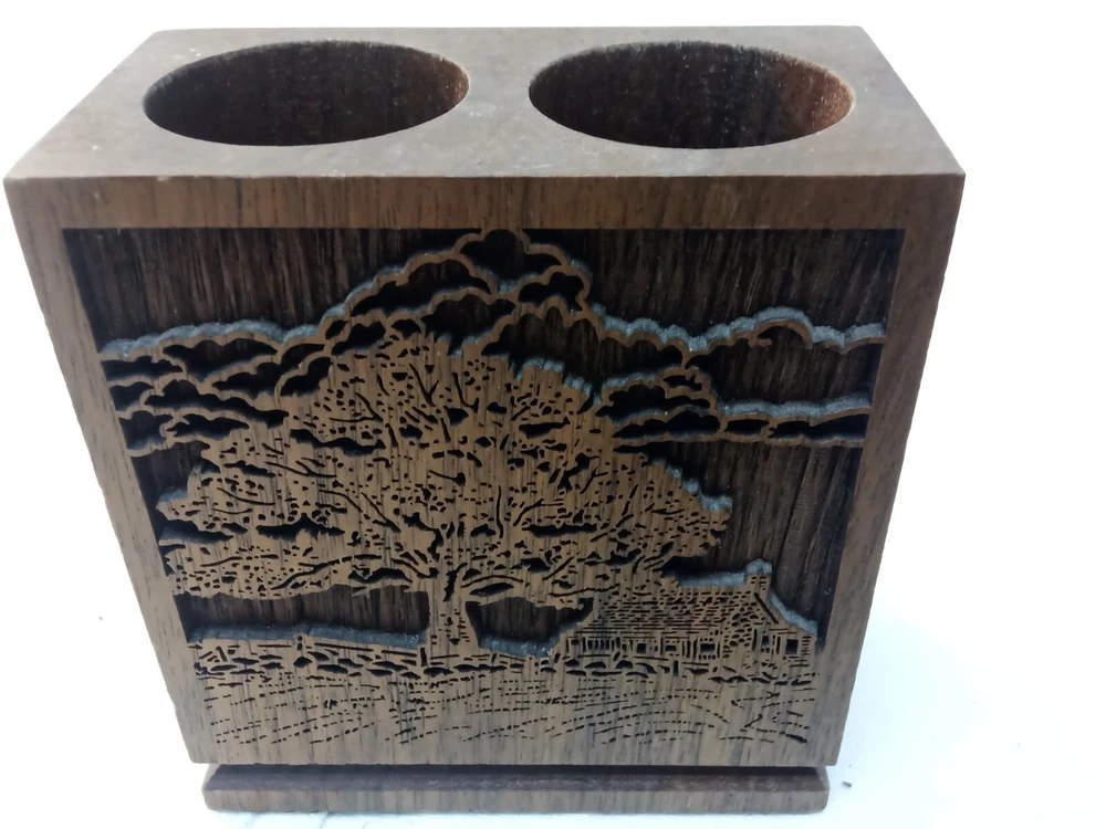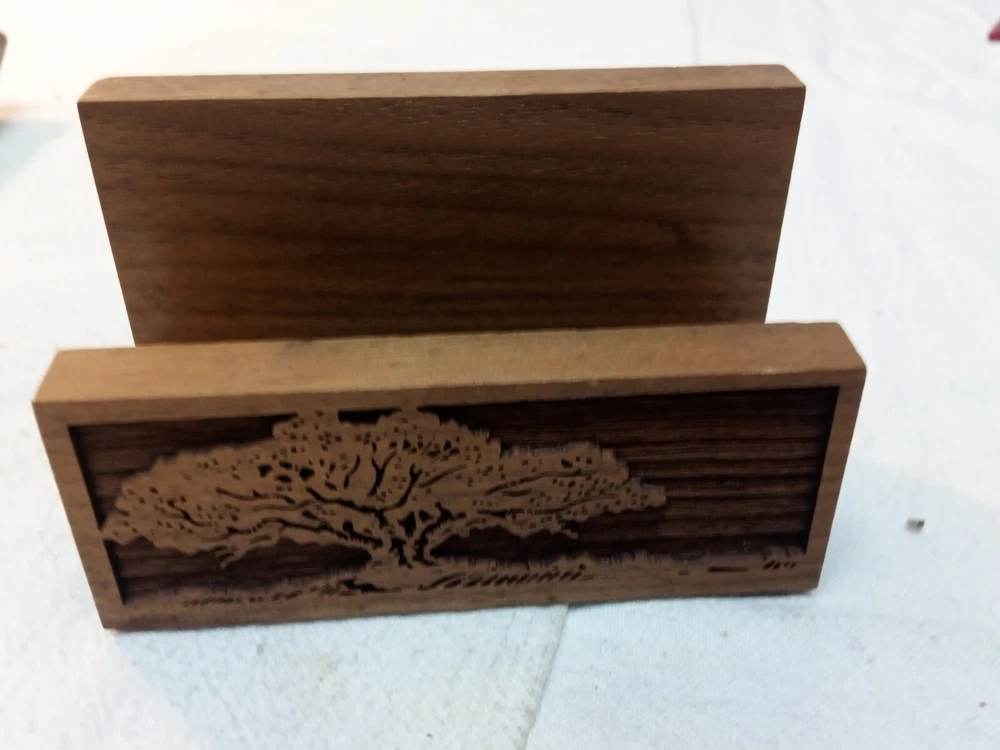 HomeVintage Lasercraft American Walnut Wood Laser Engraved 4 Piece Desk Set Trees