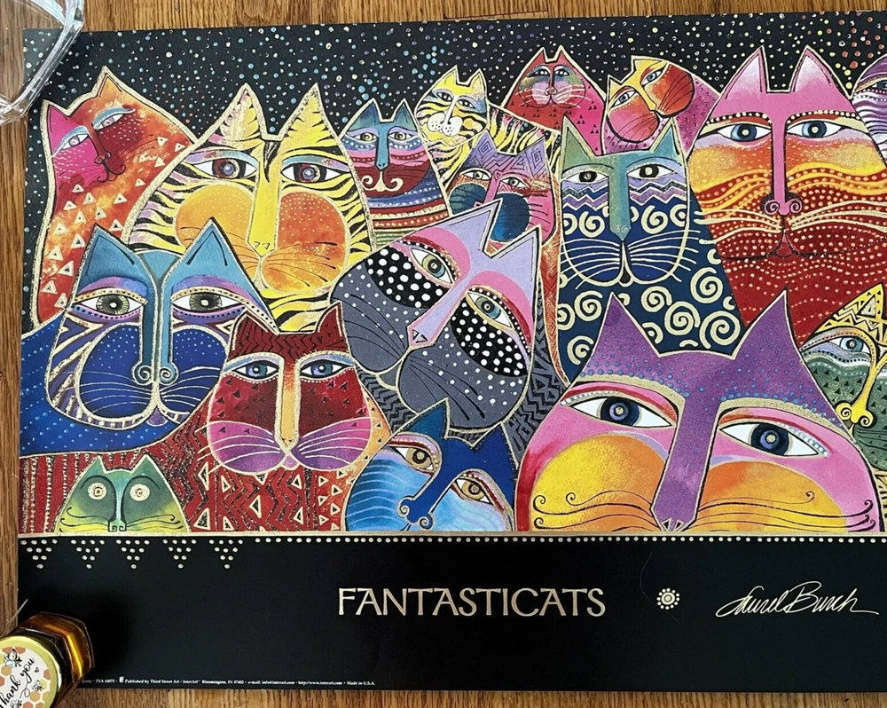 Vintage Laurel Burch Art Poster "Fantasticats" Print 14x24” Bright Colorful RARE Never used - kept rolled up in the container. This is printed on heavy paper. Thanks for looking!