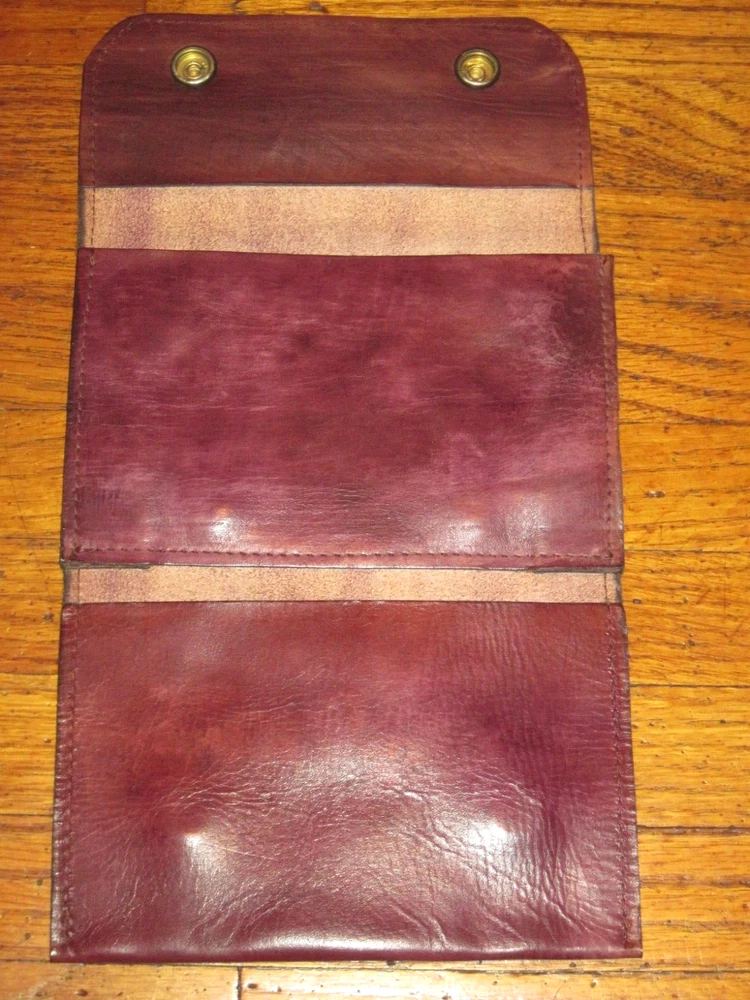 Vintage Leather Bifold 2 Pocket Belt Wallet 6" X 4" Excellent Condition. 6" X 4 1/4" closed, 8" fully opened, 2 pockets. Belt loops fit up to a 2" belt. Comes from a pet free smoke free shop.