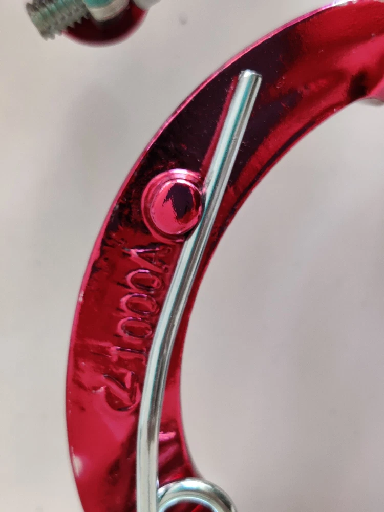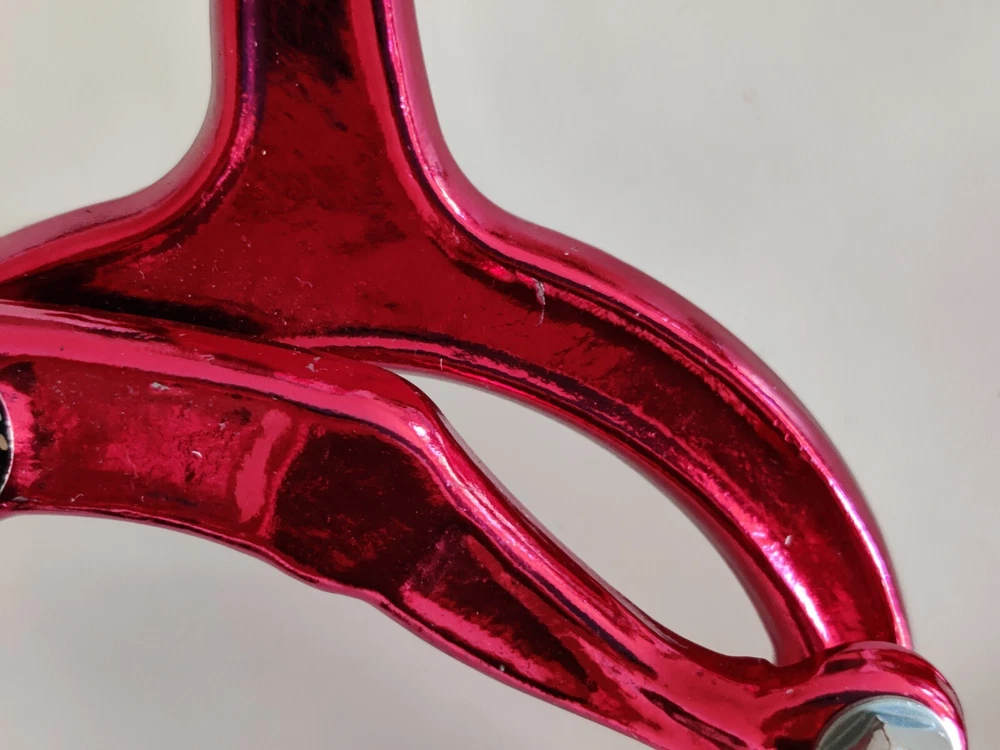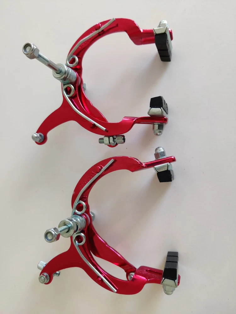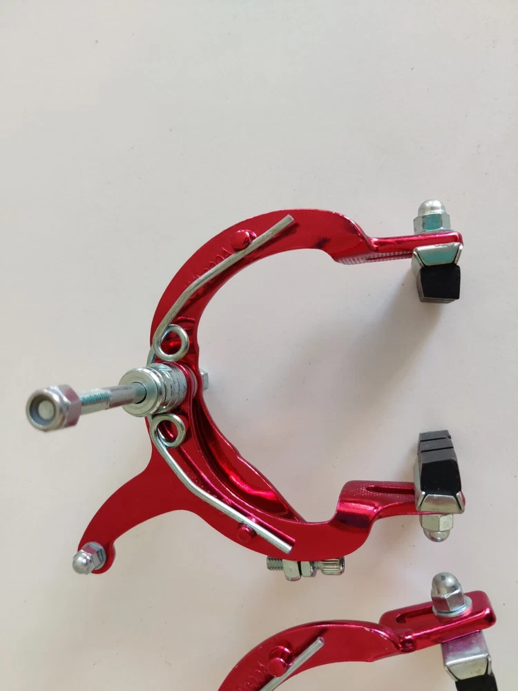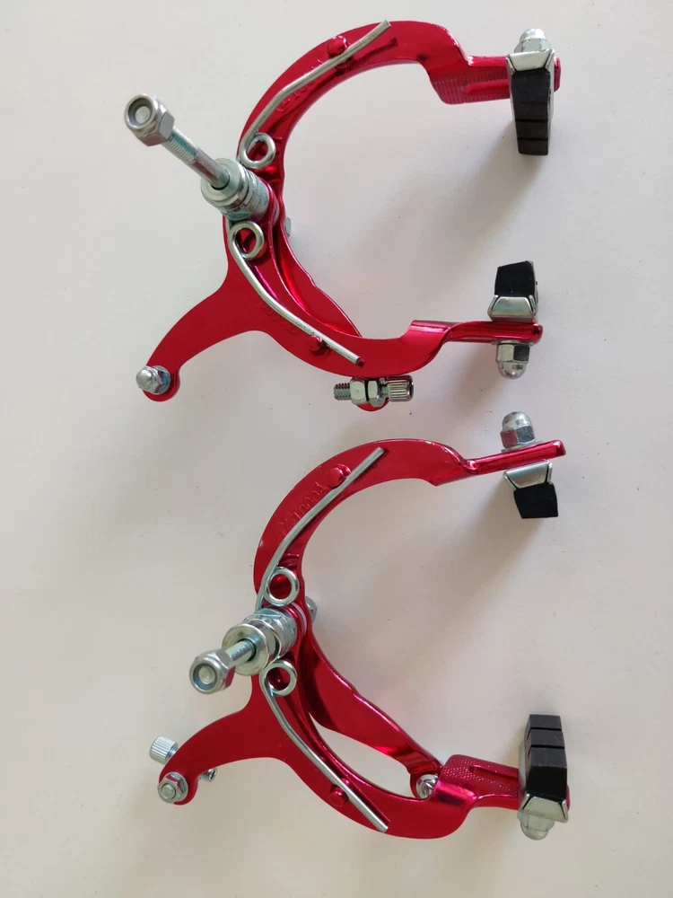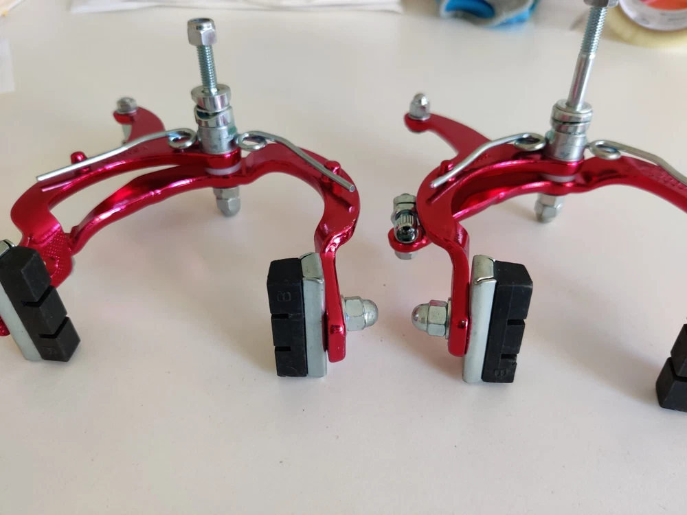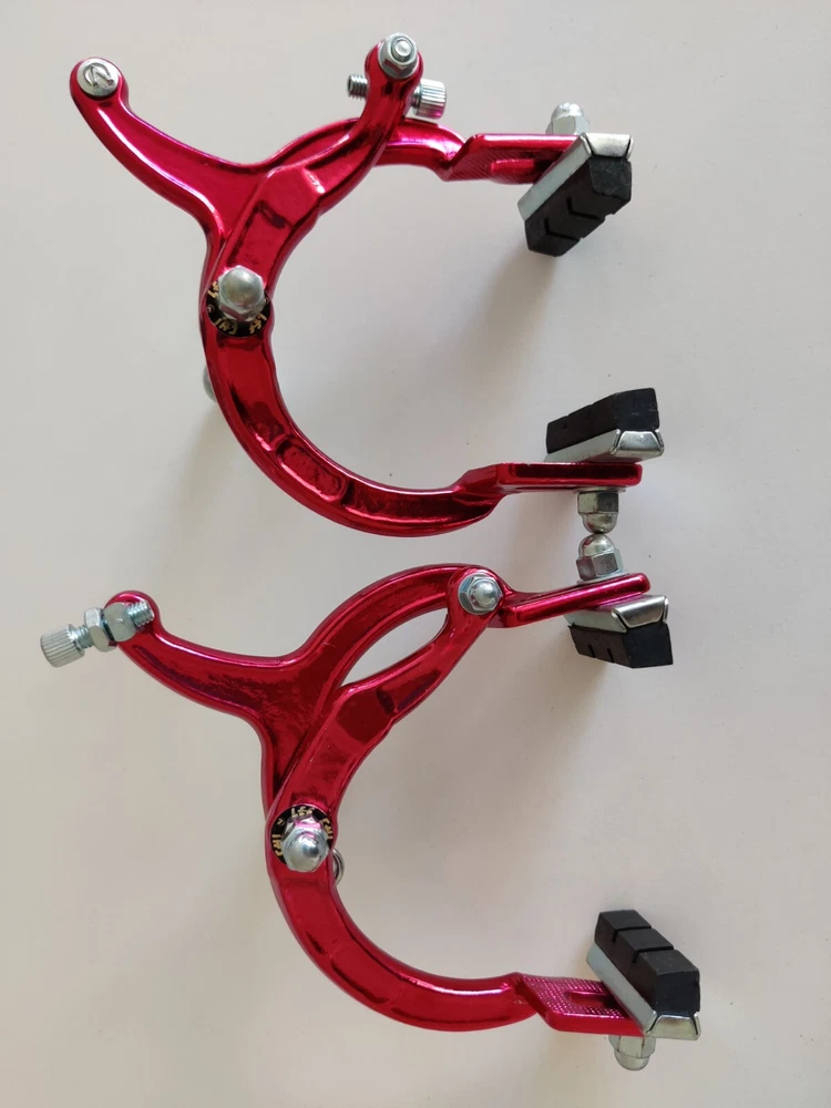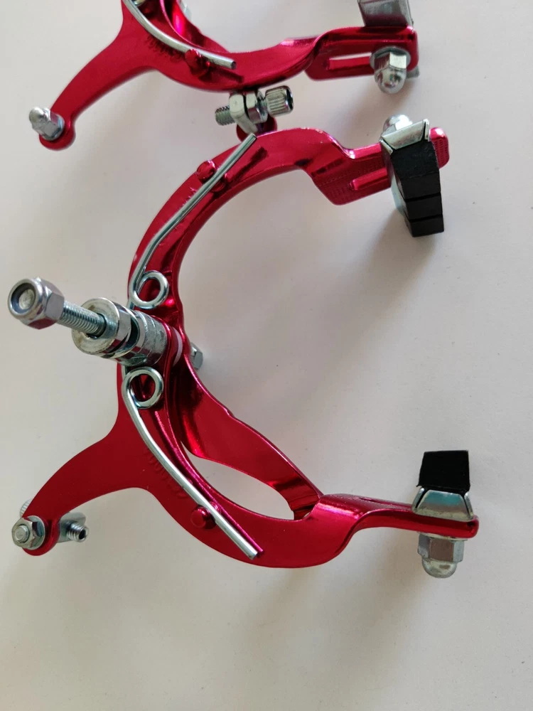 Vintage Lee Chi Front & Rear Brake Calipers 1000A Chrome Old School BMX New, never used/mounted Old-school style from Lee Chi Brake pads included There is a very minor shelf wear, tiny hairline scratches on paint from storage for many years on one of the calipers. See photos. Note, the color is not a true red but a pinkish red. Different lighting and angles may affect the color shown in the photos. See last few photos for color comparison. Please ensure items fit your needs. Final sales.