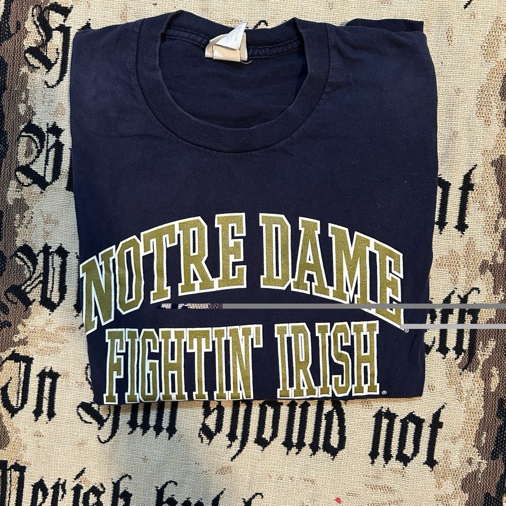 Vintage Lee Sport Notre Dame Fighting Irish Navy Long Sleeve Shirt Size Medium