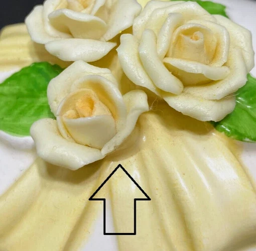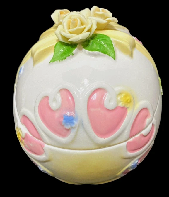 Vintage Lefton Easter Egg Trinket Dish Bisque Applied Yellow Roses on Lid