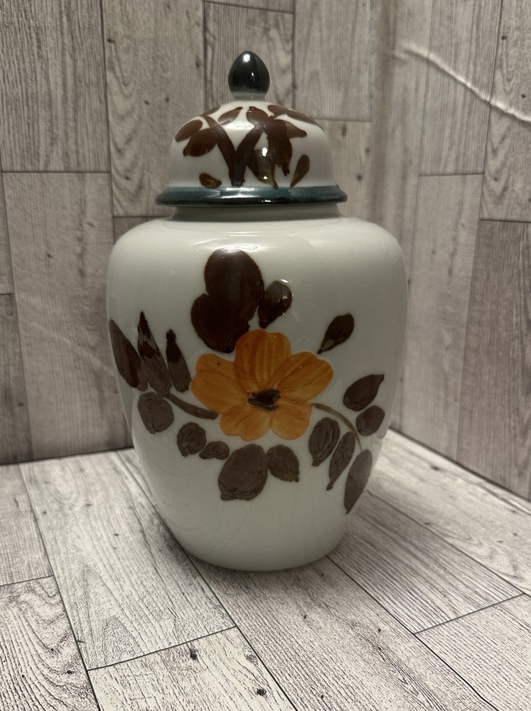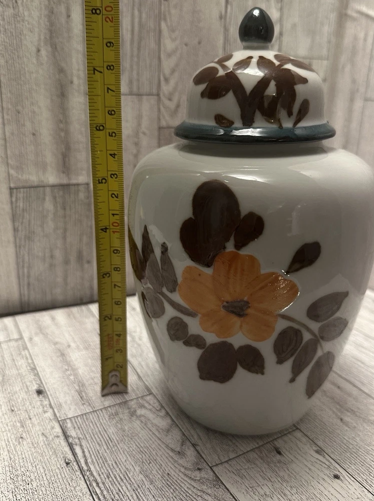 This vintage Japanese ginger jar is hand-painted with a white stone Asian design and vibrant orange and Brown accents. Made in Japan, it features traditional Japanese culture and craftsmanship. The ceramic jar stands at 8 inches tall and is a unique collectible item. Vintage Glass Disclaimer Thank you for your interest in this vintage glass item! Please read the following details carefully to ensure you are fully informed before making your purchase: Condition: This is a genuine vintage/antique piece and is sold as-is. It may display signs of age and wear, such as minor scratches, discoloration, or manufacturing imperfections, which are typical for items of this era. I strive to describe all notable flaws accurately and include detailed photos as part of the description. Please review the images carefully, as they are considered part of the listing. Authenticity: To the best of my knowledge, this item is an authentic vintage glass piece from the [specific era, if known]. Use Disclaimer: Due to the items age, this piece is not recommended for food or drink use. It is intended for decorative purposes only. The buyer assumes all responsibility for use or misuse of this item. Packaging and Shipping: I take great care to package each item securely with protective materials to ensure safe delivery. However, I cannot be held responsible for damage that may occur during shipping. If any issues arise, please contact me, and I will assist in filing an insurance claim. Shipping insurance is included with your purchase for added peace of mind. Returns: All sales are final unless the item is significantly not as described in the listing. Please contact me within 3 days of receiving the item if you believe there is a discrepancy. Questions: I encourage buyers to ask questions or request additional photos before purchasing. I?m happy to provide any additional information to ensure your confident in your purchase. By purchasing this item, you acknowledge and accept the terms of this disclaimer.